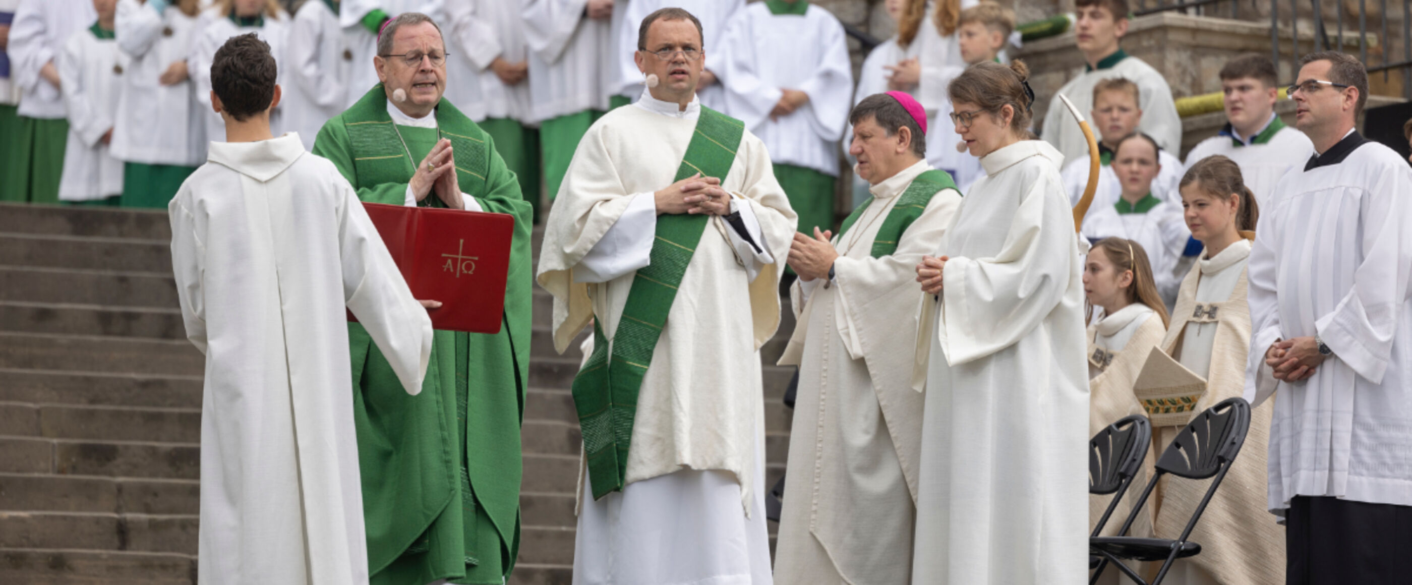 Erfurt/Hannover. In Erfurt ist am Sonntag der 103. Deutsche Katholikentag zu Ende gegangen. Im feierlichen Abschlussgottesdienst auf dem Domplatz rief der Vorsitzende der Deutschen Bischofskonferenz, Georg Bätzing, zu mehr Zuversicht auf. Religionen könnten den Menschen einen Sinn geben, der christliche Glaube könne entlasten. Die Präsidentin des Zentralkomitees der deutschen Katholiken (ZdK), Irme Stetter-Karp, rief dazu auf, die Demokratie zu verteidigen und mit Leben zu füllen. Am Schluss des Gottesdienstes wurde zum nächsten Deutschen Evangelischen Kirchentag eingeladen, der im kommenden Jahr in Hannover stattfindet.
