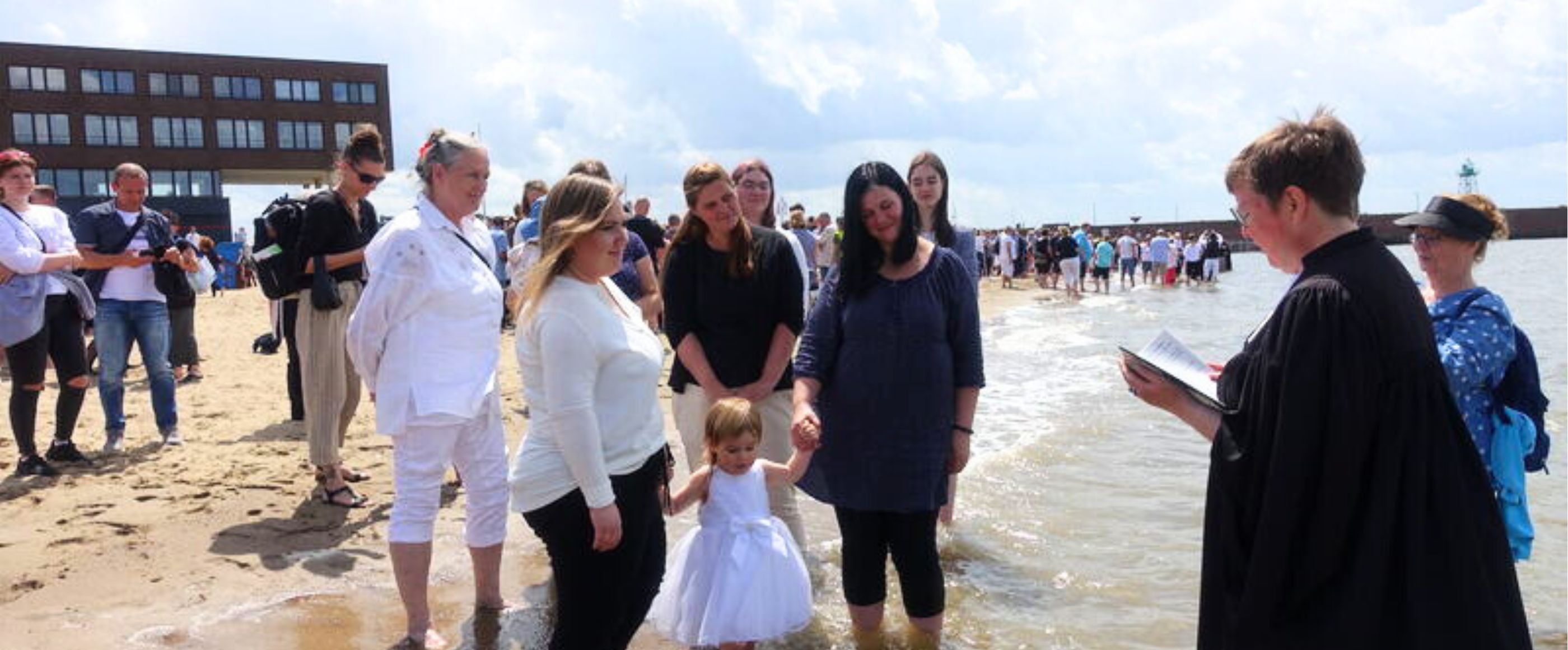 Bremerhaven. Das ökumenische Tauffest am kommenden Sonntag (4. August) in Bremerhaven trifft auf großes Interesse. „Wir haben 101 Anmeldungen und rechnen mit mehr als 1.000 Gästen“, sagte Bremerhavens Superintendentin Susanne Wendorf-von Blumröder dem Evangelischen Pressedienst (epd). 15 Pastorinnen und Pastoren wollen ihren Angaben zufolge den Segen Gottes austeilen - mit den Füßen und dem Talar im Wasser.
