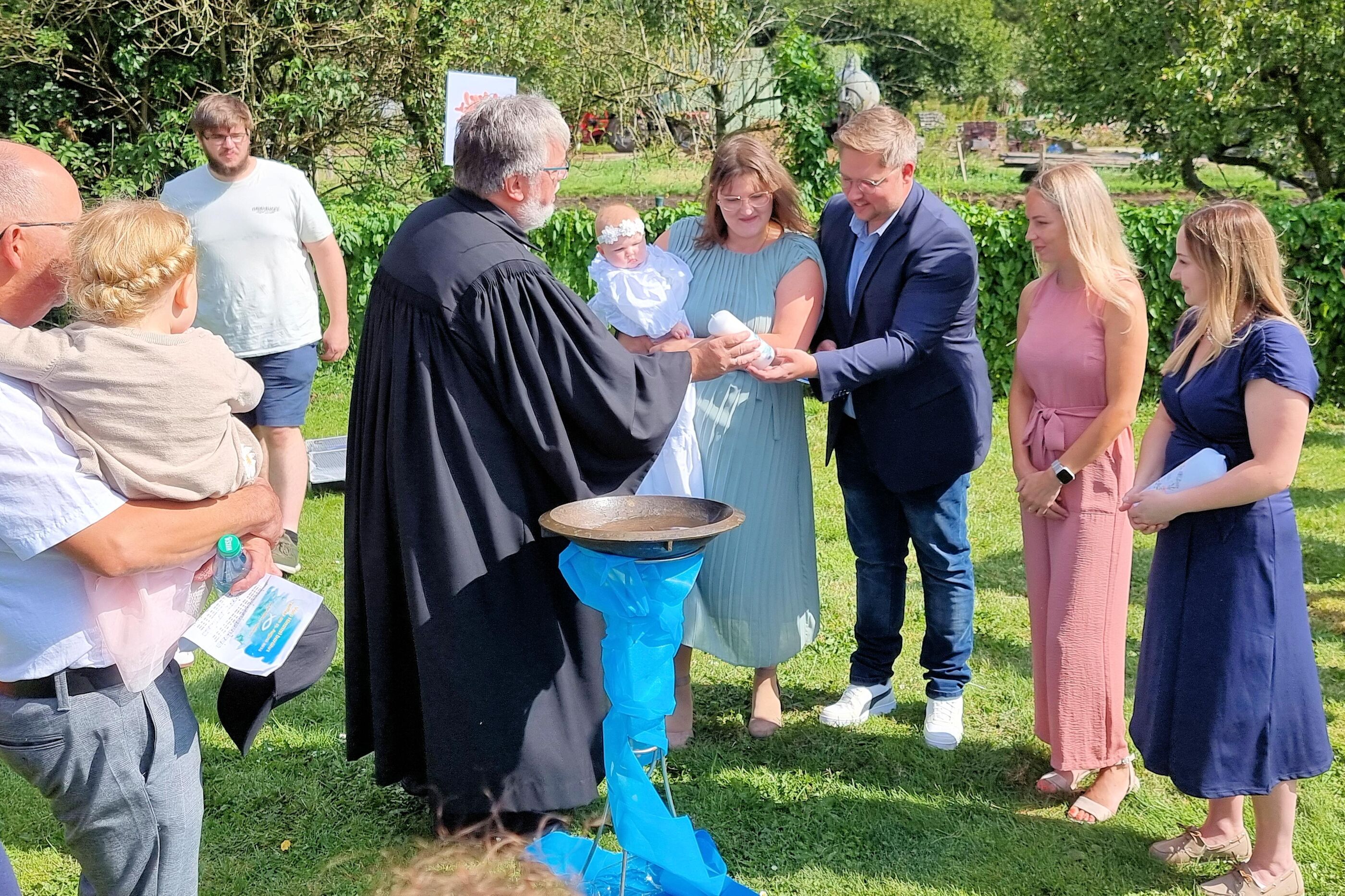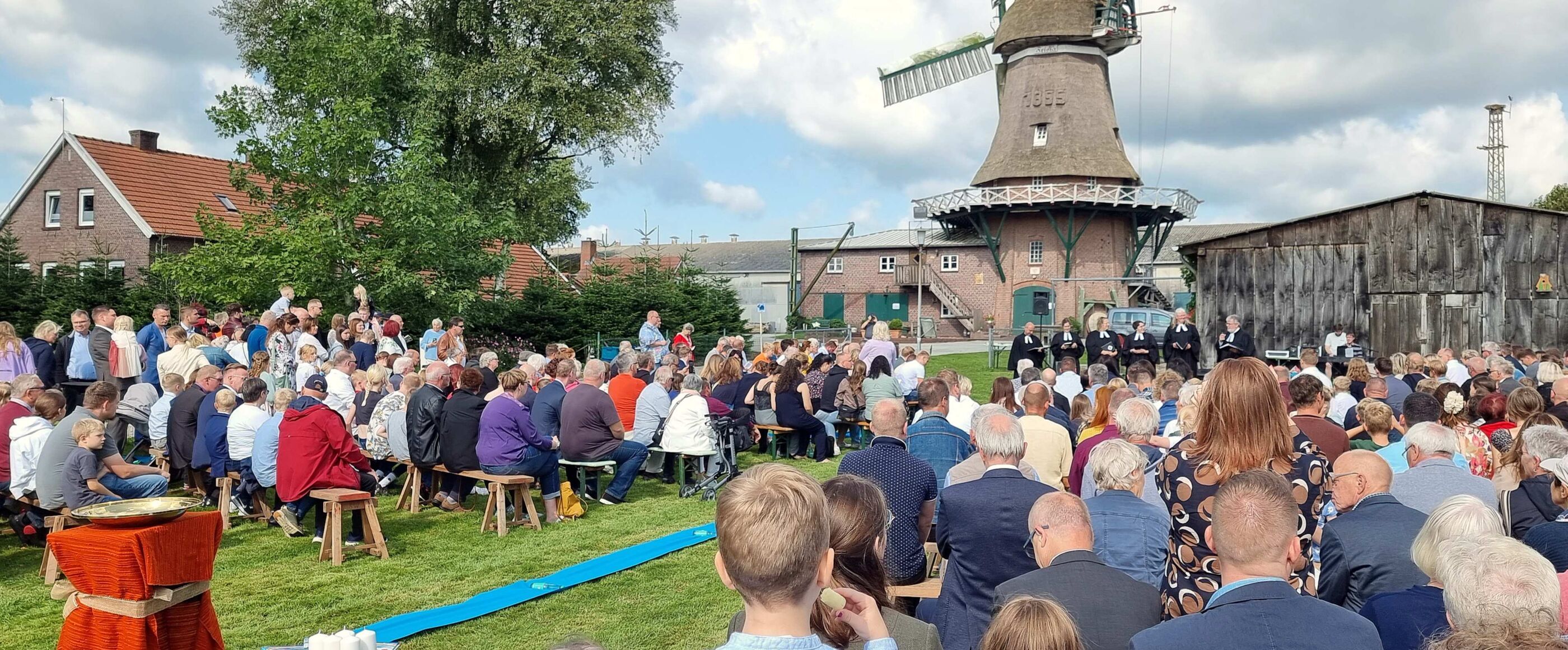 Leer-Logabirum - „Großartig, dass wir das gemeinsam feiern dürfen“, sagte Pastor Andreas Bartels beim Tauffest unter freiem Himmel auf der Wiese vor der Mühle Eiklenborg in Leer-Logabirum. Acht evangelisch-lutherische Gemeinden waren beteiligt. Bei schönem Spätsommerwetter wurden 39 Menschen im Alter zwischen wenigen Monaten und 29 Jahren getauft.