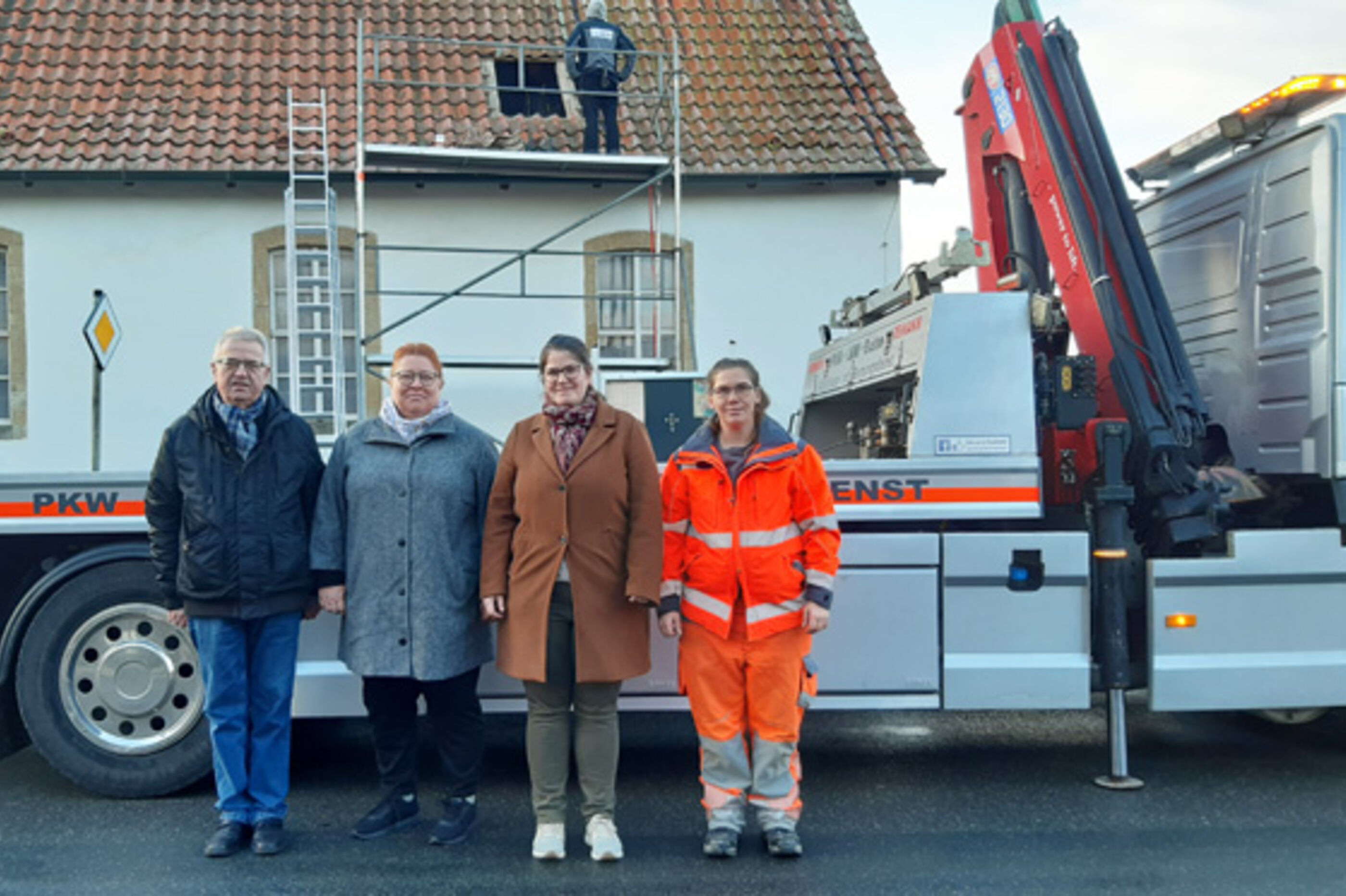 Kalt und sonnig war es Anfang Dezember. Die Dorfstraße in Rennau ist vorübergehend nur auf einer Seite befahrbar, denn zur Kapelle hin steht ein Abschleppfahrzeug. „So was mache ich nicht alle Tage“, erzählt die 36-jährige Sarah, die sonst Autos und Lkw abschleppt. Durchfahrende Trecker und Lieferwagen müssen sich gedulden und den Gegenverkehr passieren lassen. Was da genau passiert, wirkt unauffällig, wenn auch Regine Müller, Jürgen Brandes, Friederike Böhm, Nando Röckemann, Wolfgang Ezer und ein Dorfbewohner von der gegenüberliegenden Straßenseite das Geschehen beobachten. „Ich freue mich, hier heute was Gutes für die Kirche tun zu können. Ich denke, die Glocke geht zur Restauration“, sagt die Abschleppfachfrau.