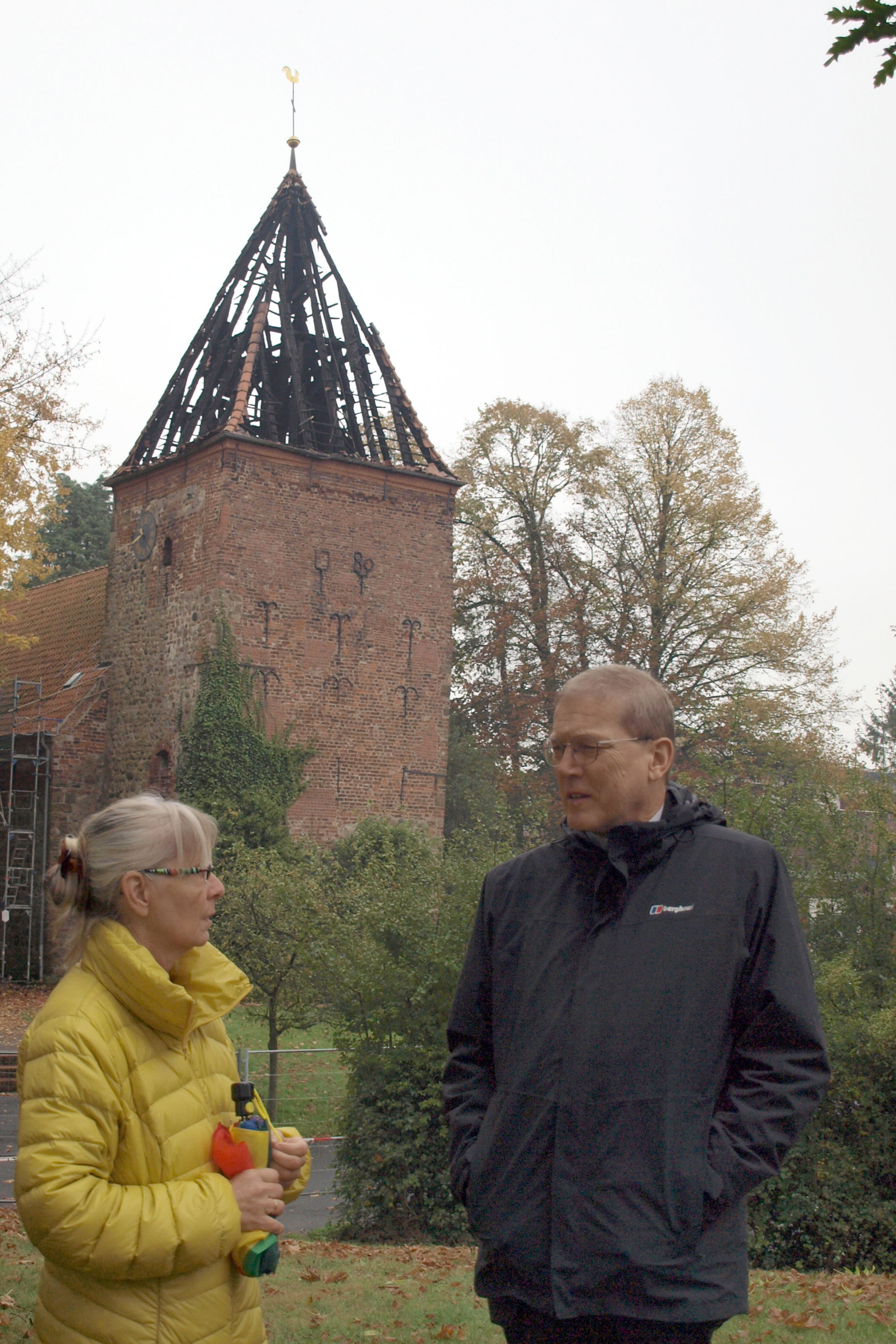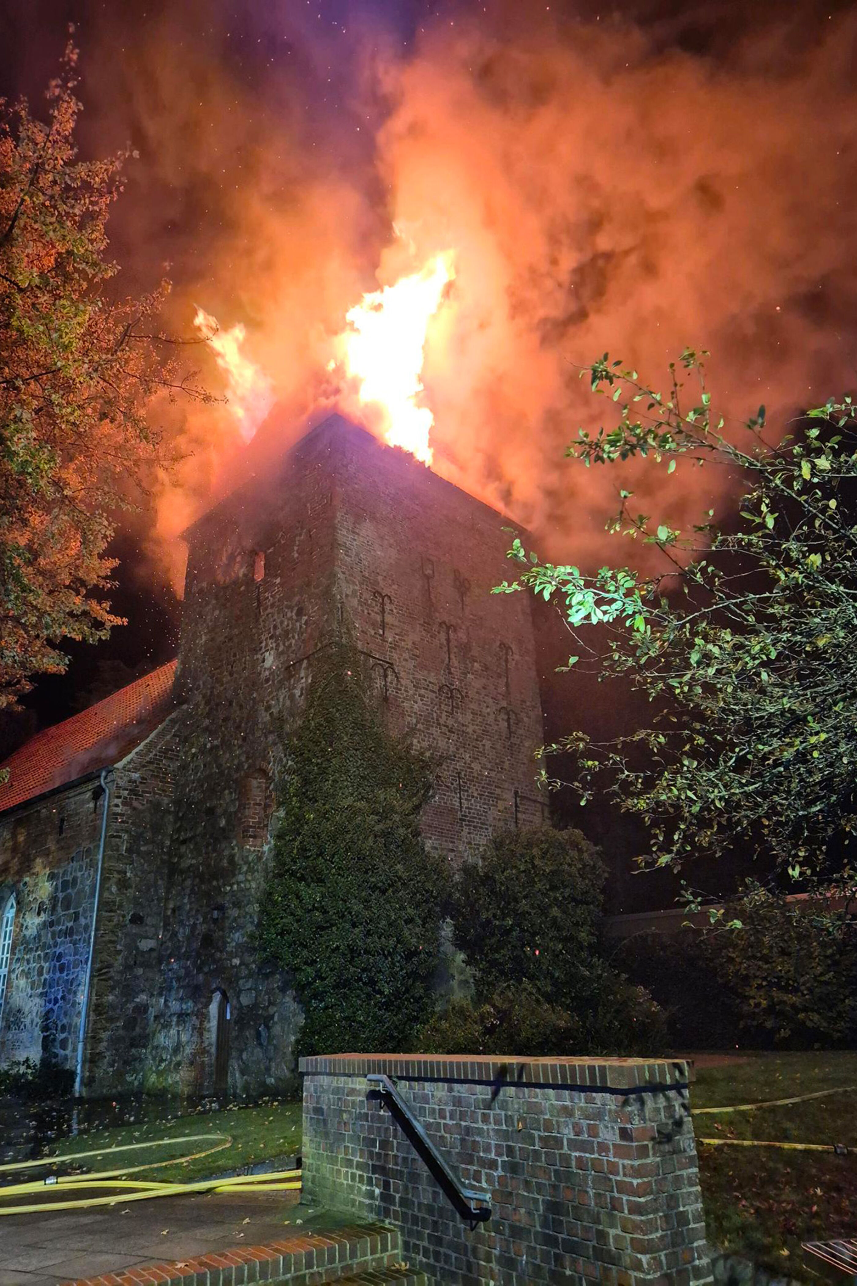 Was an der Straße "Am Jedutenberg" geschah, konnte Warnecke nur aus der Ferne über WhatsApp-Nachrichten der Anwohner verfolgen – die Polizei hatte das Gebiet aus Sicherheitsgründen weiträumig abgesperrt. Die Menschen mussten in ihren Häusern bleiben. Fotos und Nachrichten zeigten den lichterloh brennenden Turm der alten Wehrkirche, deren Anfänge bis ins Jahr 885 zurückreichen. Der Brand ist nach Angaben der Polizei wohl auf einen technischen Defekt zurückzuführen.