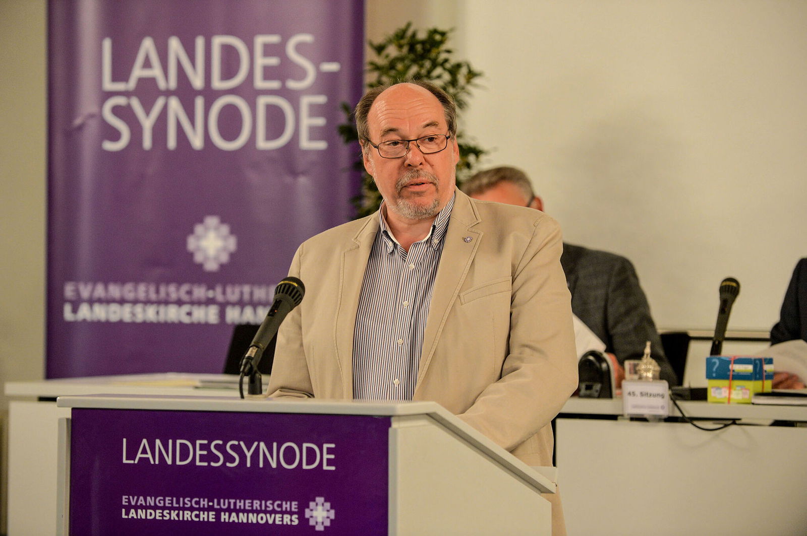 In der anschließenden Aussprache über diesen Antrag wurden weitere Probleme sichtbar. „Die Gesellschaft verändert sich und Altern geht heute anders als noch vor 50 Jahren“, gab Dr. Uwe Brinkmann (Osterode) zu bedenken. Ab einer gewissen Altersgrenze könne sich die geistige Fitness jedoch schnell ändern. So schlug Brinkmann vor, ab einer Altersgrenze von 75 Jahren den Dienst zwar nicht zu verbieten, aber einen regelmäßigen Besuch eines Vertreters des Pfarrkonvents für eine einschätzende Wahrnehmung einzuführen. Kurz vor der Abstimmung fasste Arend de Vries, Geistlicher Vizepräsident des Landeskirchenamtes, die Sachlage zusammen. „Ich bitte Sie zu bedenken, dass eine Aufhebung der Altersgrenze auf der einen Seite die geistliche Leitung vor Ort belastet, auf der anderen Seite aber die Ehrenamtlichen und ihre Bereitschaft, ihre reiche Lebenserfahrung mit uns zu teilen, würdigt“, so de Vries.