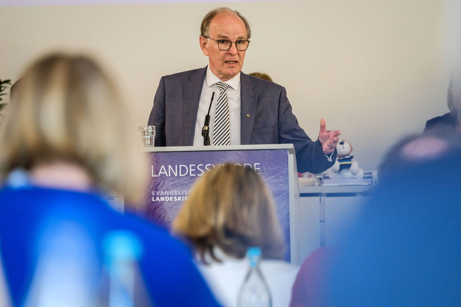 Mit Selbstkritik blickte Bischof Meister auf die aktuellen Zukunftsprozesse und Transformationen innerhalb der Kirche. Ihm sei bewusst, wie sehr Kirche in Bewegung sei und auf dem Weg. Das sei Kirche immer schon ihrem Wesen nach gewesen. Und doch: „Wir sind immer noch eine sehr eingerichtete Kirche. Bei jedem Blick auf die protestantischen Kirchen außerhalb unseres Landes müssen wir vollständig anders über unsere Kirche sprechen: Wir haben zu viel Geld, zu viele Gebäude, zu viele Strukturen, zu viele Gesetze, und haben mit all diesen Dingen zu viel Last damit.“