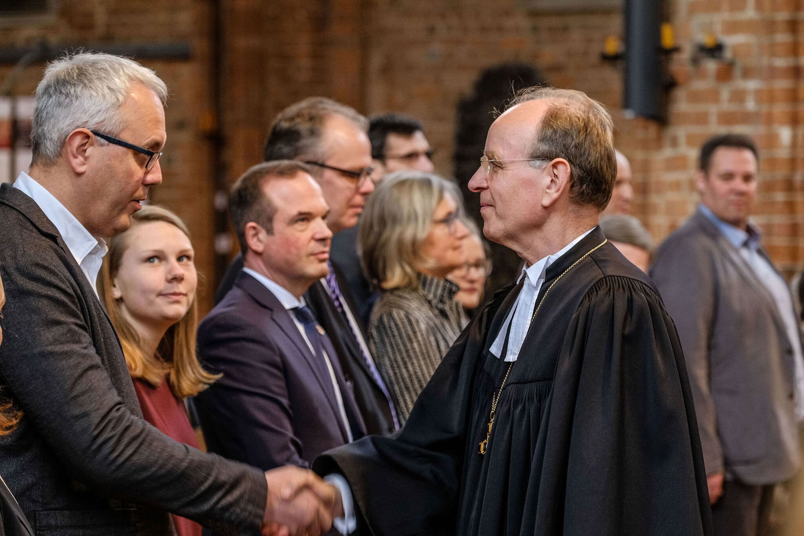 Mit einem festlichen Gottesdienst in der Marktkirche Hannover hat am Donnerstagmorgen die 26. Landessynode der Landeskirche Hannovers begonnen. Am ersten Tag der ersten Tagung des kirchenleitenden Gremiums sind die 80 Mitglieder des Kirchenparlaments, von denen erstmals mehr als die Hälfte Frauen sind, von Landesbischof Ralf Meister auf ihr Amt verpflichtet worden. Bläserinnen und Bläser des Ensembles "Junges Blech" spielten während des Gottesdienstes, dazu wirkte liturgisch neben vielen anderen auch Jonathan R. Gibbs, Bishop aus Huddersfield, mit.