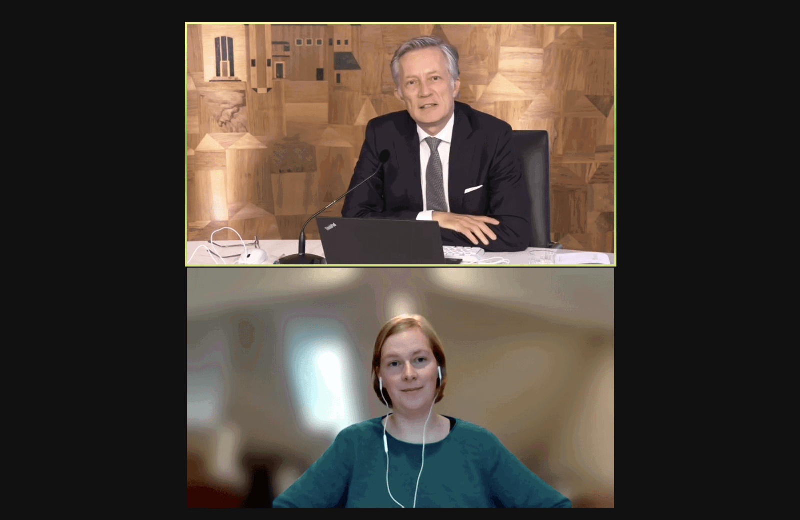 Zum ersten Mal in der Geschichte der Landessynode verpflichtete der Präsident dann ein Mitglied auf digitalem Weg. Verena Dierks aus dem Kirchenkreis Emden-Leer im Sprengel Ostfriesland-Ems nahm zum ersten Mal an einer Tagung der Landessynode teil und bestätigte die Verpflichtungsformel per Videokonferenz.