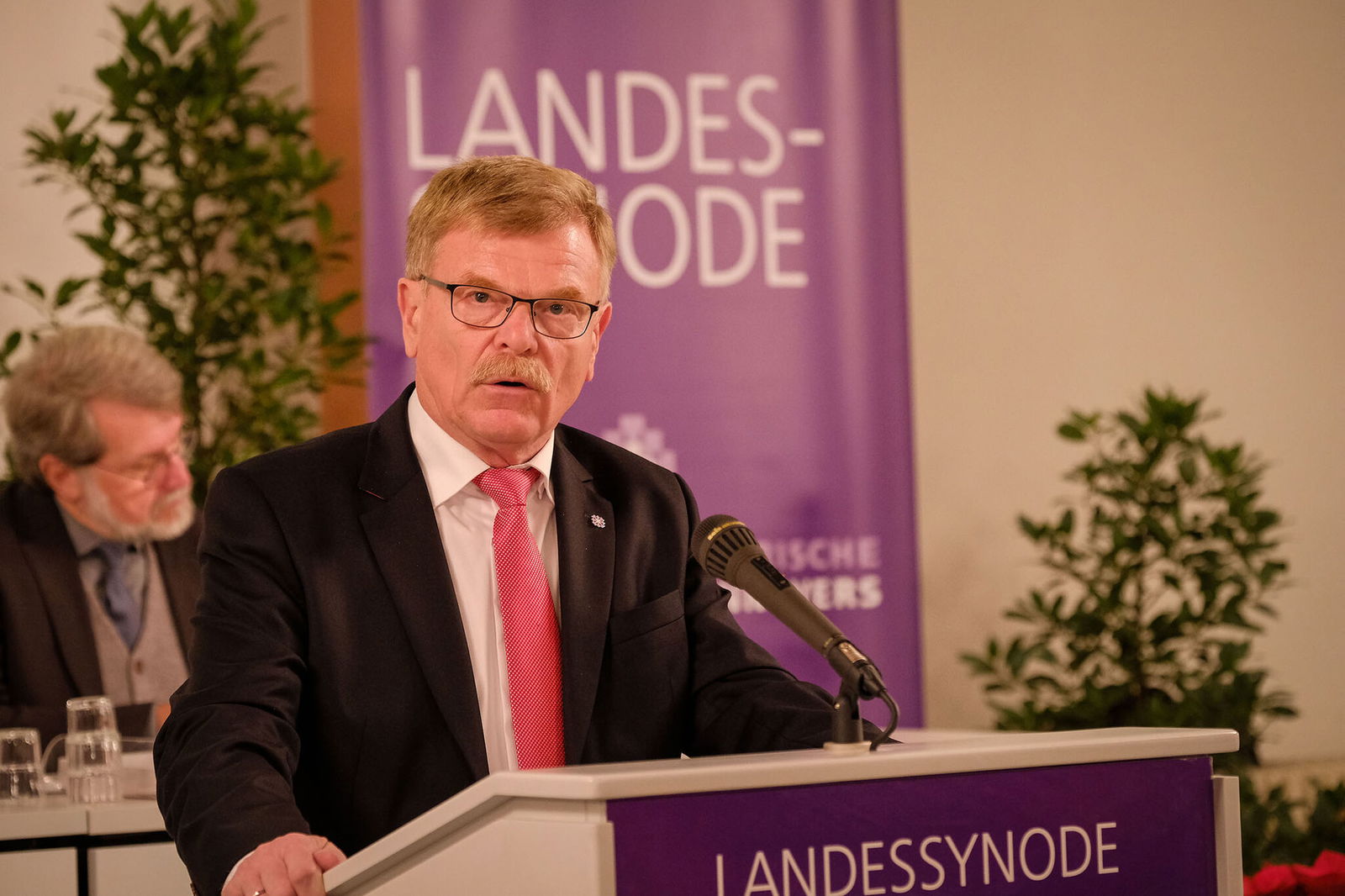 Klaus Kastmann, Mitglied des Kirchensenates, brachte am ersten Sitzungstages für den Kirchensenat den Entwurf eines Kirchengesetzes zur Änderung des Kirchengesetzes über die Bildung der Landessynode, das sogenannte Landessynodalgesetz, ein. In diesem Entwurf geht es um die stärkere Einbindung der Kirchenkreistage bei der Nominierung von Kandidierenden und um die Vermeidung von Neuwahlen.