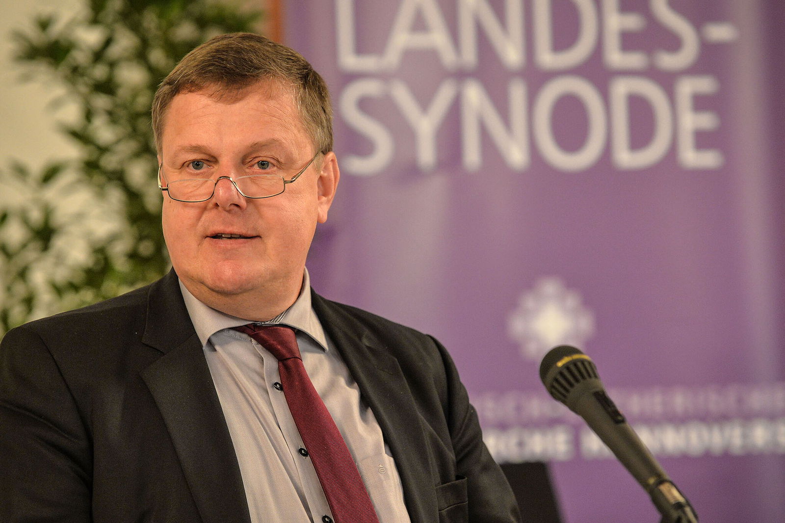 „Alle merken, da sitzt wieder ein vertrautes Gesicht“. Mit diesen Worten begrüßte Synodenpräsident Matthias Kannengießer Oberlandeskirchenrat i.R. Dr. Christoph Künkel. Dieser war in die Synode gekommen und hatte kurz noch einmal den Platz in der Reihe des Landeskirchenamts genommen. Er gab damit der Synode Gelegenheit, sich von ihm zu verabschieden. Im November 2017 ist Künkel, der Oberlandeskirchenrat für den Bereich der Diakonie und Vorstandssprecher der Diakonie in Niedersachsen war, nun aus gesundheitlichen Gründen in den Vorruhestand gewechselt. „Herr Dr. Künkel hat das diakonische Gesicht geprägt. Viele kennen und schätzen ihn als Mann klarer Worte“, unterstrich Kannengießer die Bedeutung des Gastes: „Sie haben immer die Stimme erhoben für die, die die eigene Stimme nur schwer zu Gehör bringen können. Dafür sind wir in der Landessynode sehr dankbar!“.