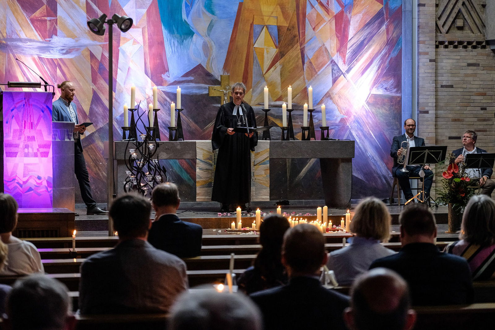 Jugendliche des Sprengels Hildesheim-Göttingen, die Landesposaunenwarte und Kirchenmusikerin Imke Marks gestalteten den Gottesdienst. Selter war kurzfristig für die an Covid erkrankte Regionalbischöfin des Sprengel Hildesheim-Göttingen, Dr. Adelheid Ruck-Schröder, eingesprungen.