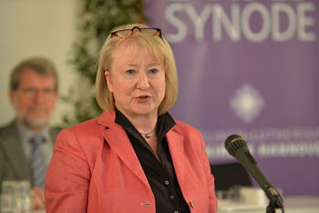 Zu Beginn der Plenarsitzung der Landessynode in der Osnabrücker Schlossaula war die Präses der Sy...