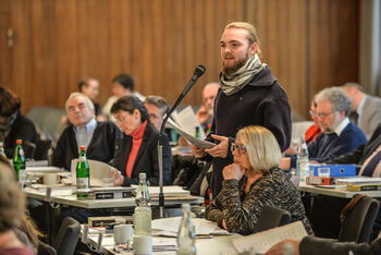 Für den Verfassungsausschuss stellte der Präsident der Landessynode, Dr. Matthias Kannengießer, d...