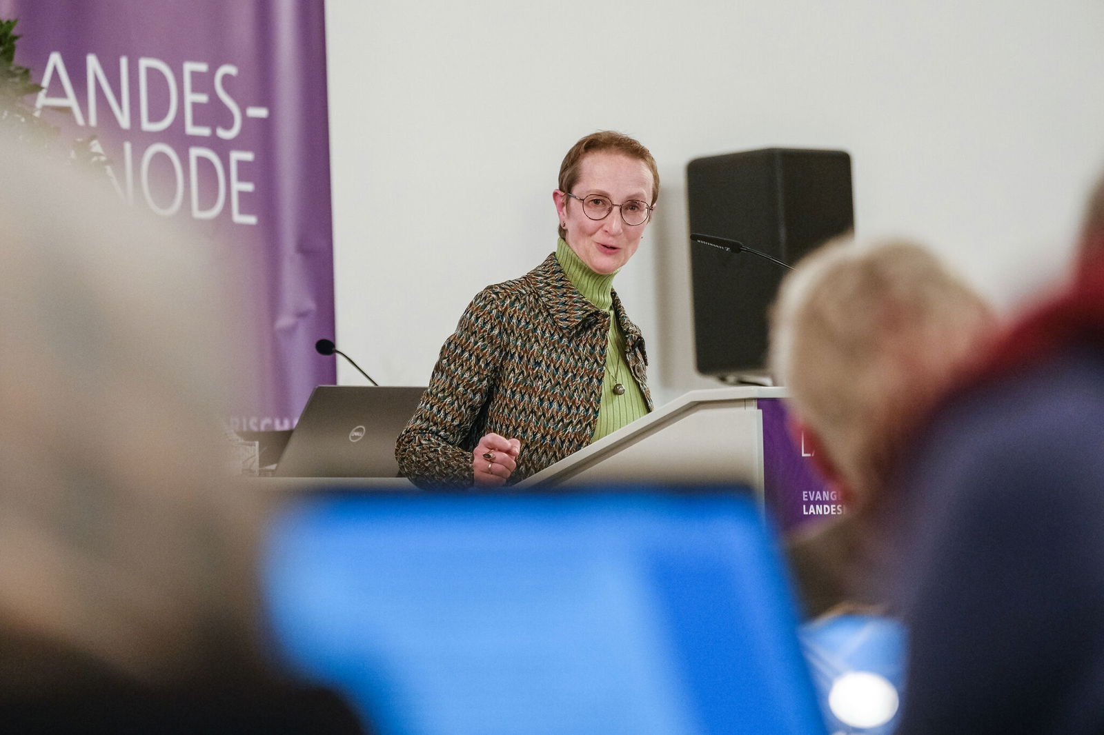 In ihrem Abschlussstatement dankte Dr. Springer für die Anregungen und Bestärkung der Synode, im Rahmen des Reformprozesses auch externe Beratung hinzu zu ziehen – insbesondere dort, wo radikale Änderungen gedacht werden müssen. Sie bestätigte, dass der Prozess auf allen Verwaltungsebenen parallel erfolge und warb erneut dafür, Ideen einzutragen. Auch das sei Teil von Sprunginnovation. Ihr Bild von Verwaltung sei die „dienende Assistenz“ und sie sei guter Hoffnung, dass man diesem Ziel sichtbar näherkommen werde.