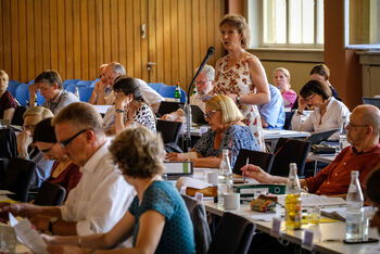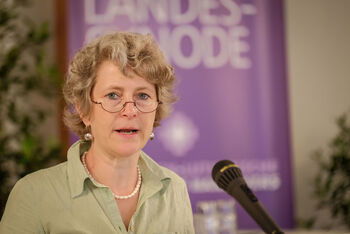Für den Ausschuss für Mission und Ökumene berichtete die Synodale Ruth Scheffler-Hitzegrad (Caden...