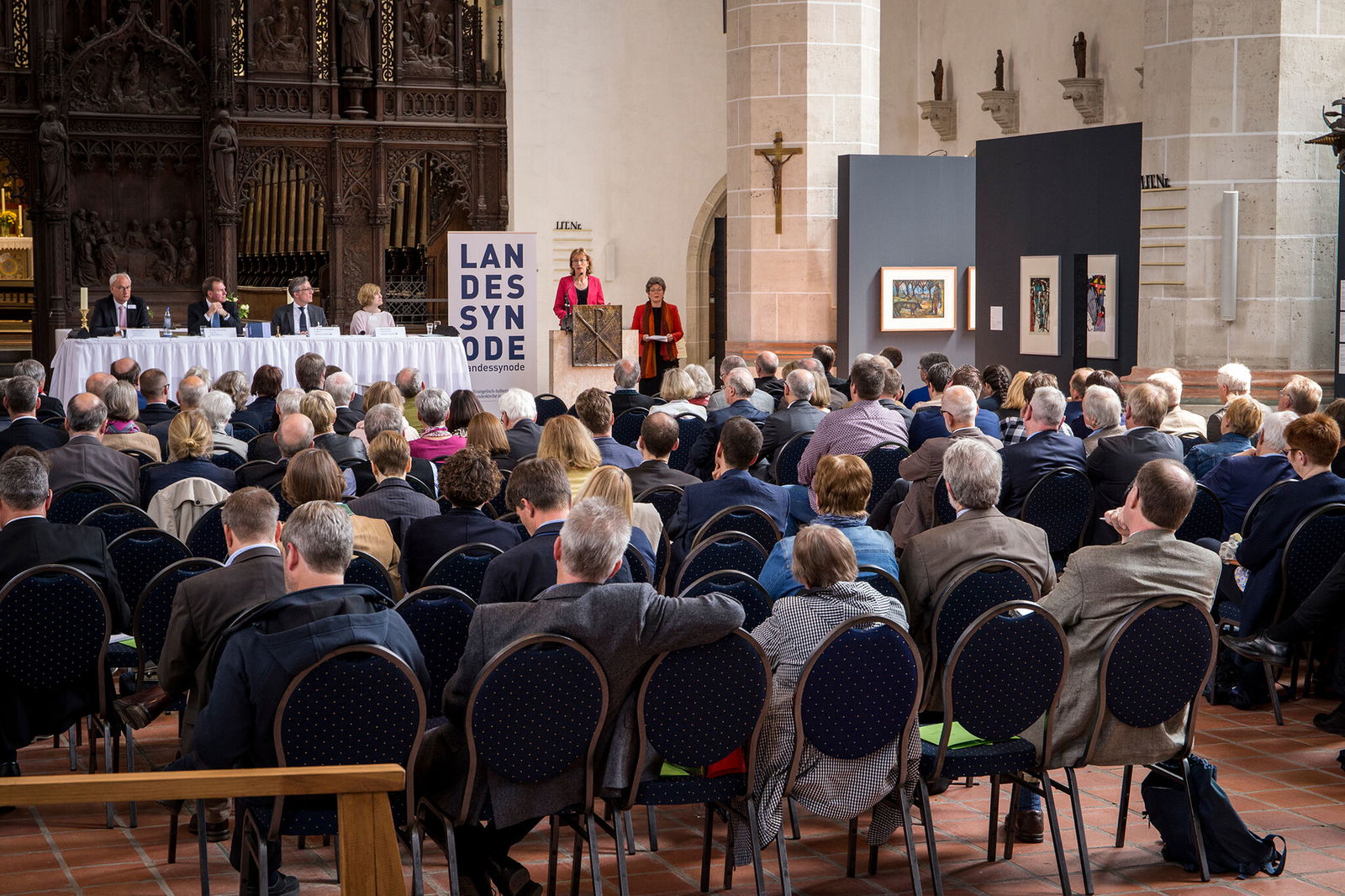 Als inhaltlicher Schlusspunkt der gemeinsamen Synodentagung in der Braunschweiger Brüdernkirche stand der Bericht der Beauftragten über die Arbeit der Konföderation evangelischer Kirchen in Niedersachsen. Die Oberlandeskirchenrätinnen Dr. Kerstin Gäfgen-Track und Dr. Andrea Radtke hielten diesen Bericht gemeinsam.
