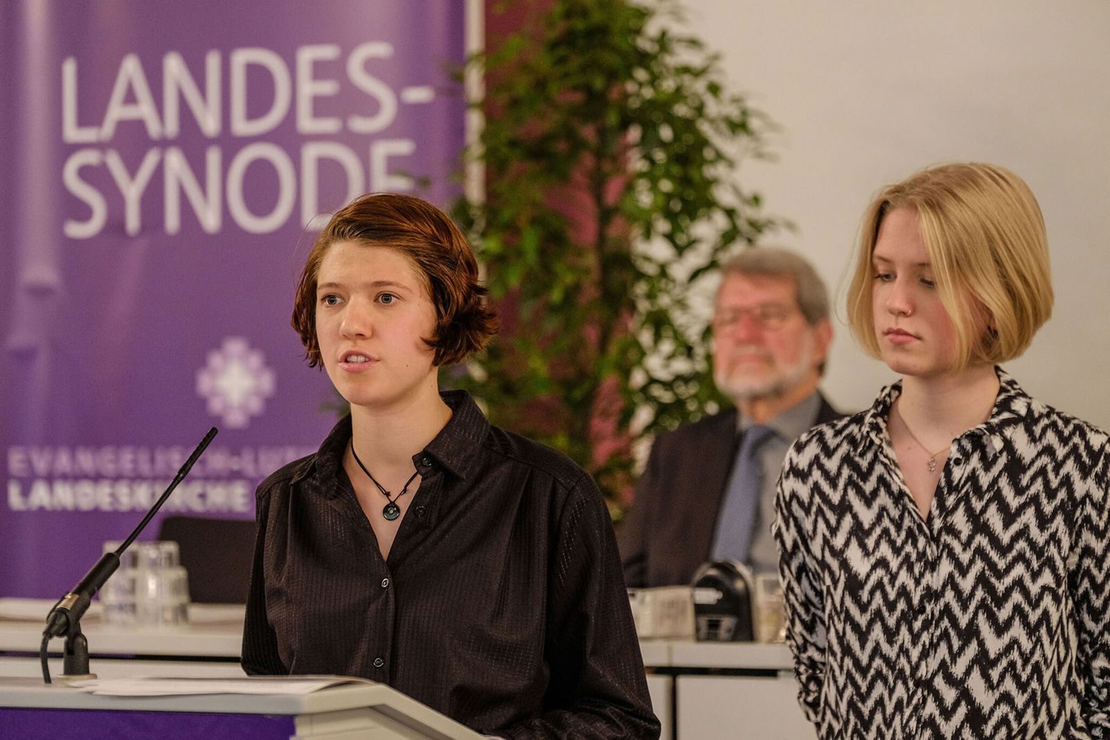 Paula Seidensticker und Lisa Steinwandel, die sich in Celle und Lüneburg engagieren, forderten das Kirchenparlament auf, den Einfluss der Kirche für den Klimaschutz einzusetzen. „Christin oder Christ zu sein bedeutet, Verantwortung zu übernehmen und zu handeln.“ Das Erzeugen von Abgasen oder Fleischkonsum seien mit christlicher Nächstenliebe nicht zu vereinbaren, so die jungen Frauen. Noch gebe es die Möglichkeit, die Folgen des Klimawandels zu mildern. Die Kirche müsse sich dafür einsetzen, dass gerade auch ältere Menschen den drohenden Klimawandel ernst nähmen. Von den Mitgliedern der Landessynode gab es nach dem Statement lauten Applaus.