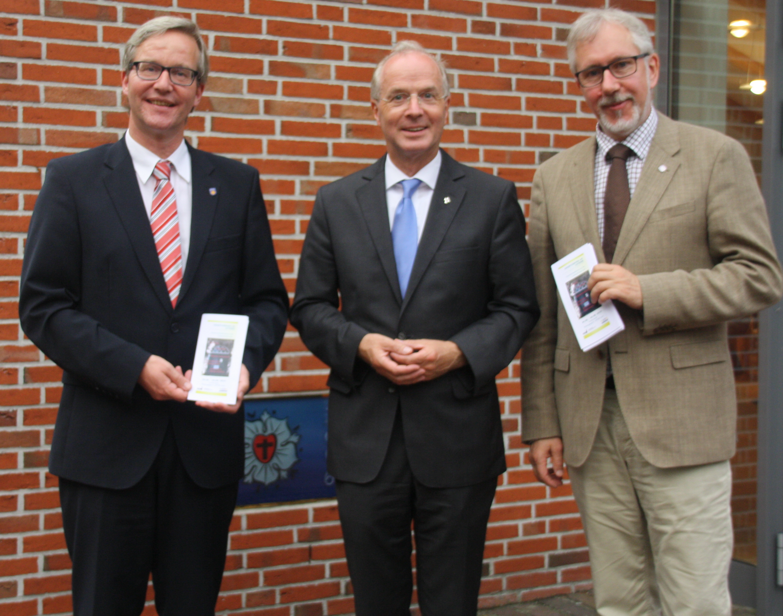 öso. Leer. „Luther ist umstritten und dennoch bin ich gerne Lutheraner“, sagte der Schirmherr der Sommerakademie an der Lutherkirche in Leer, Landessuperintendent Dr. Detlef Klahr, zum Auftakt der sechswöchigen Veranstaltungsreihe. Den mehr als hundert Besuchern schilderte der Regionalbischof des Evangelisch-lutherischen Sprengels Ostfriesland-Ems in anschaulicher und persönlicher Weise, was ihn an Luther begeistert, was ihn aber auch zu deutlicher Distanzierung herausfordert. So sei es die Sprachkraft Martin Luthers, die ihn bis heute beim Lesen seiner Predigten fessele oder die in seiner Bibelübersetzung zum Ausdruck komme. Luther ginge es darum, den Bibeltext der eigenen Sprache anzupassen. In diesem Sinn werde nun zu Beginn des Jubiläumsjahres am 31. Oktober 2016 eine revidierte Übersetzung der Lutherbibel erscheinen. Faszinierend sei es auch, dass ein einzelner Mönch es gewagt hatte, vor dem Reichstag zu Worms zu sagen: „Hier stehe ich, ich kann nicht anders!“