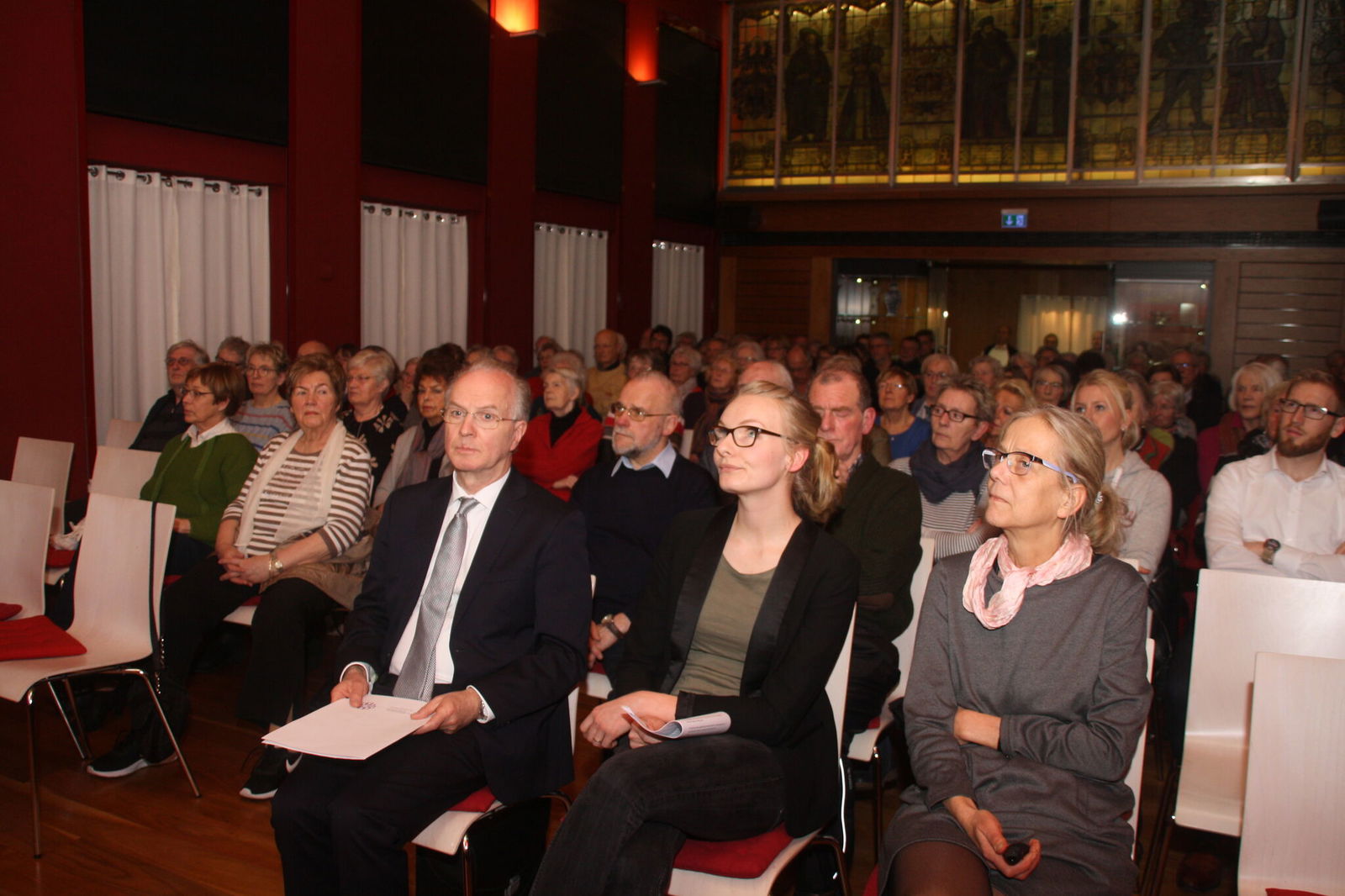 Sarah Byl machte die Zuhörer darauf aufmerksam, dass Dix in seinem Werk nicht anklagen wolle, sondern das unermessliche Leid aufzeige, das geschehen sei. Das Triptychon als Form des Altarbildes zeige immer eine Folterstätte, Nährboden der Gewalt und Ort des Martyriums. Selbst Christus sei hier zerschossen wie die abgebildeten Soldaten. Geprägt sei Dix in seinem Malstil von altdeutschen Malern wie Grünewald und Cranach.