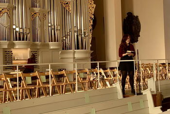 Dransfeld: Kirsten Ahlborn, die sonst ein Stück mit Kindern einübt, hat eigens eine Audio-Variant...