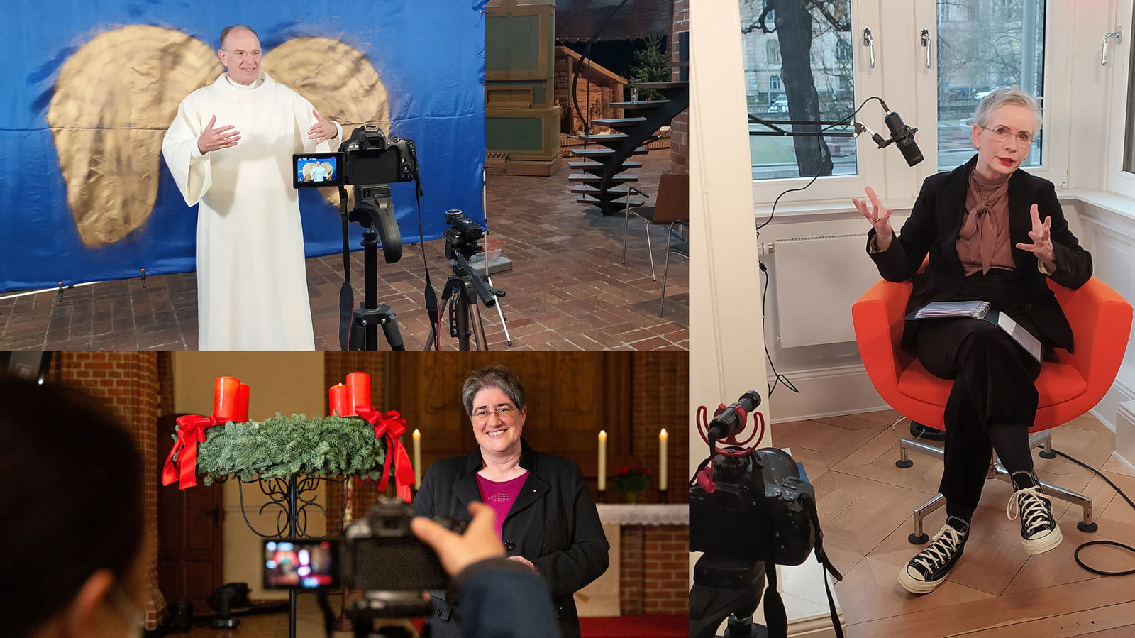 „Es geht uns um eine Risikogruppe. Menschen mit Beeinträchtigungen, in Wohnheimen und Einrichtungen werden vermutlich in diesem Jahr noch stärker in ihrer Mobilität eingeschränkt sein“, sagt Maren Mittelberg, Diakonin in der Kontaktstelle Inklusion für die Kirchenkreise Osnabrück und Melle-Georgsmarienhütte. "Die Herausforderung ist, Szenen, Text und Gebärdensprache passend zu machen, aber dann getrennt aufzunehmen. Und natürlich alles an einem Termin, zu dem alle Zeit haben und alles von Kostümen bis zum künstlichen Tannenbaum da ist“.
