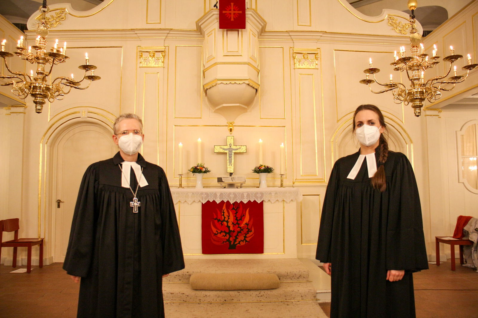 „Als junge Pastorin haben Sie sich in diesen Zeiten für diesen doch verrückten Beruf entschieden, Dinge zu verkündigen, die man nicht sehen kann – und das mit großer Zuversicht“, sagte Regionalbischöfin Dr. Bahr in Anspielung auf Hillebrechts Ordinationsspruch. Für die 30-jährige ist es die erste Pfarrstelle.