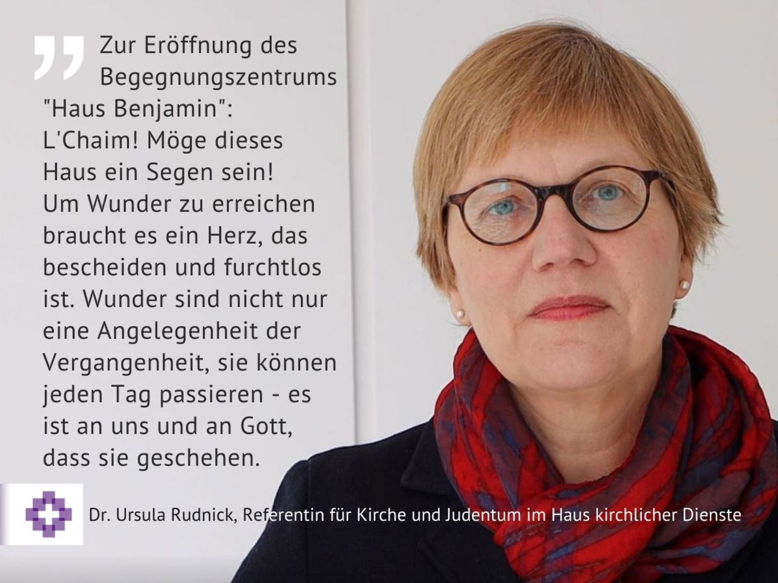 Nun leitet sie die Gemeinde - "Sie haben nicht aufgegeben und aus der Trauer heraus entstand etwas Neues, das ,Haus Benjamin'", sagt Ursula Rudnick, Referentin für Kirche und Judentum im HkD, zur Eröffnung des neuen Bildungs- und Begegnungszentrums heute. "Möge das Haus ein Segen sein, auf vielfältige Weise."