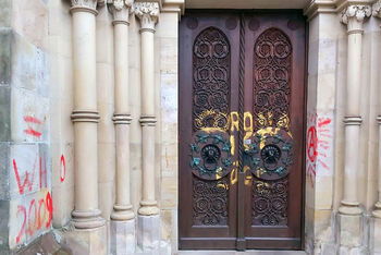 Loccum, Kr. Nienburg. Unbekannte haben die Eingangstür des Klosters Loccum mit der Aufschrift „Co...
