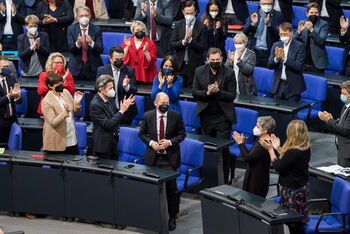 Berlin. Die Ratsvorsitzende der Evangelischen Kirche in Deutschland (EKD), Annette Kurschus, begr...