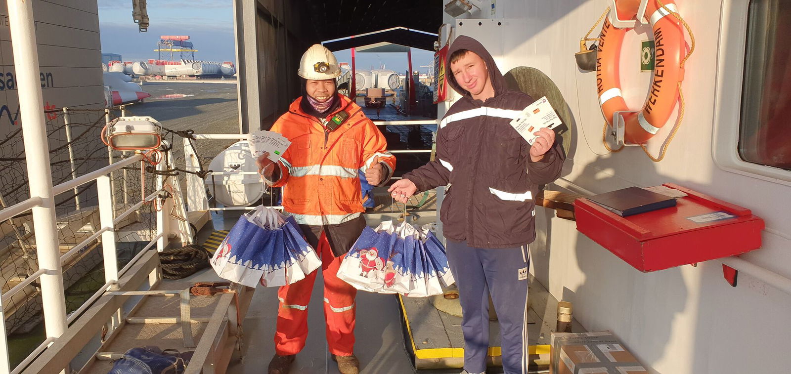 Kollegen der Deutschen Seemannsmission mit Bordbesuchen versucht,