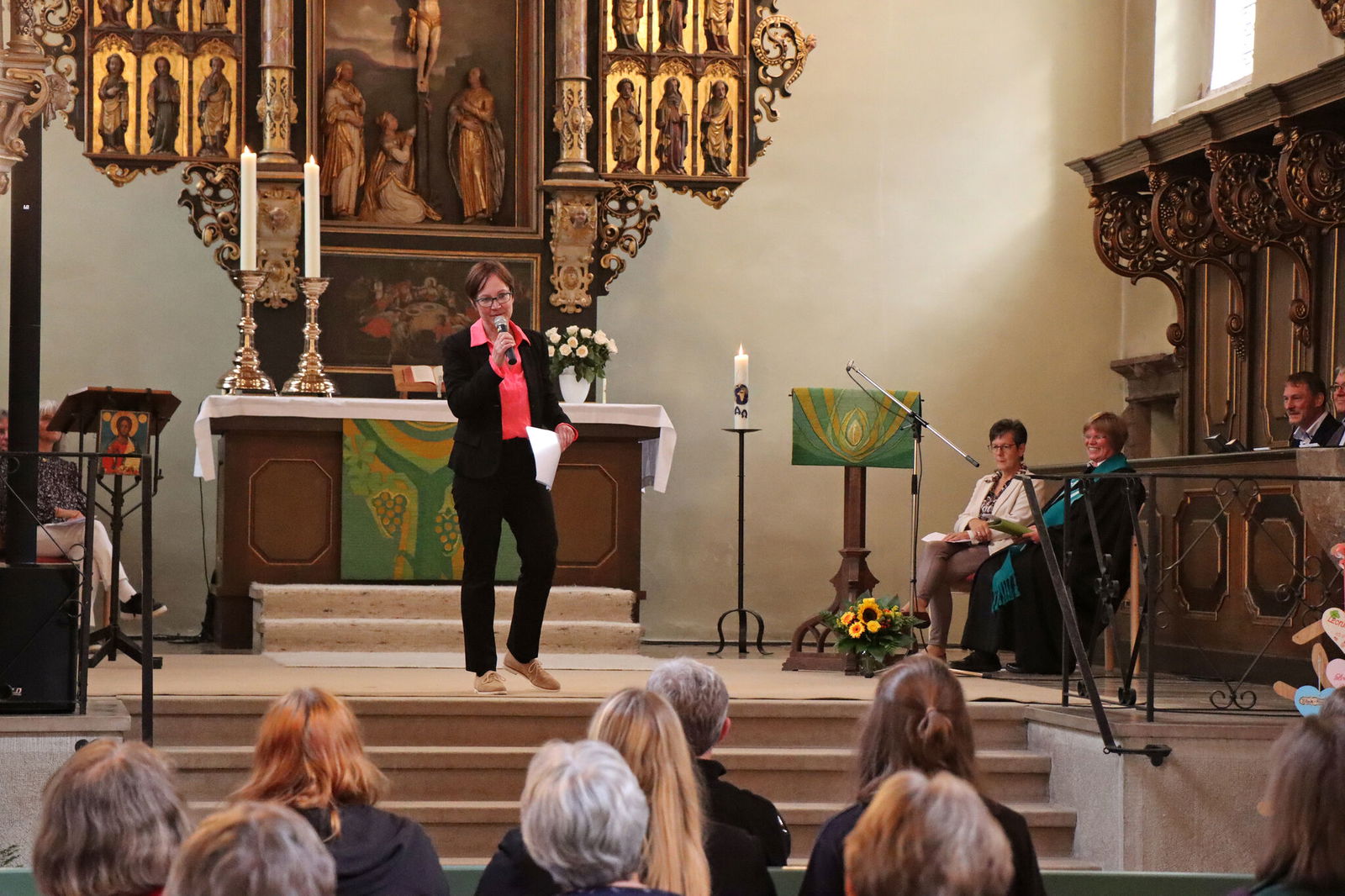 Die Kirche stehe in einer enormen Phase des Umbruchs, so die Regionalbischöfin nach der Predigt Schimmelpfengs. Entwicklung sei mit Händen zu greifen, wo sich Kirchenmitglieder und Bürger*innen in einem Dorf zusammenfinden, um ihre Kirche zu erhalten. „Wie können wir Kirche sein mit weniger Leuten und weniger Ressourcen? Das geht nicht, wenn wir sagen: Dorf A kann Dorf B nicht leiden.“