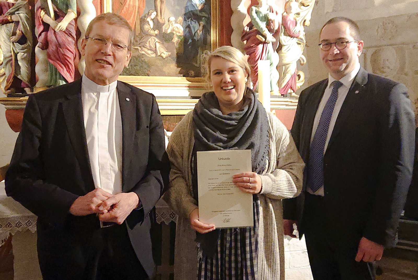 Am Wochenende segnete Regionalbischof Dr. Hans Christian Brandy die ausgebildete Religions- und Sozialpädagogin in einem Gottesdienst in Loxstedt ein. Die Einsegnung stand unter dem Bibelwort: „Du stellst meine Füße auf weiten Raum“ (Psalm 31,9), ein Wort, das Helms sehr wichtig ist. „Auf den weiten Raum freuen Sie sich in Ihrer neuen Aufgabe in der Evangelischen Jugend“, sagte Regionalbischof Brandy. „Denn als Kirche bieten wir jungen Menschen Räume der Freiheit: Räume, um Gemeinschaft zu erfahren, Räume, um sich auszuprobieren, Räume, um Toleranz und Vielfalt zu leben, Räume, um Spaß zu haben, Räume auch, um in den christlichen Glauben hineinzuwachsen und Erfahrungen im Glauben zu machen.“ Wichtig sei dabei, dass dieser Freiheitsraum im persönlichen wie im kirchlichen Leben eine Bindung an ein „Du“ habe. „Beides gehört zusammen: Bindung an Christus, Vertrauen auf ihn. Und in dieser Bindung dann eine große Weite.“