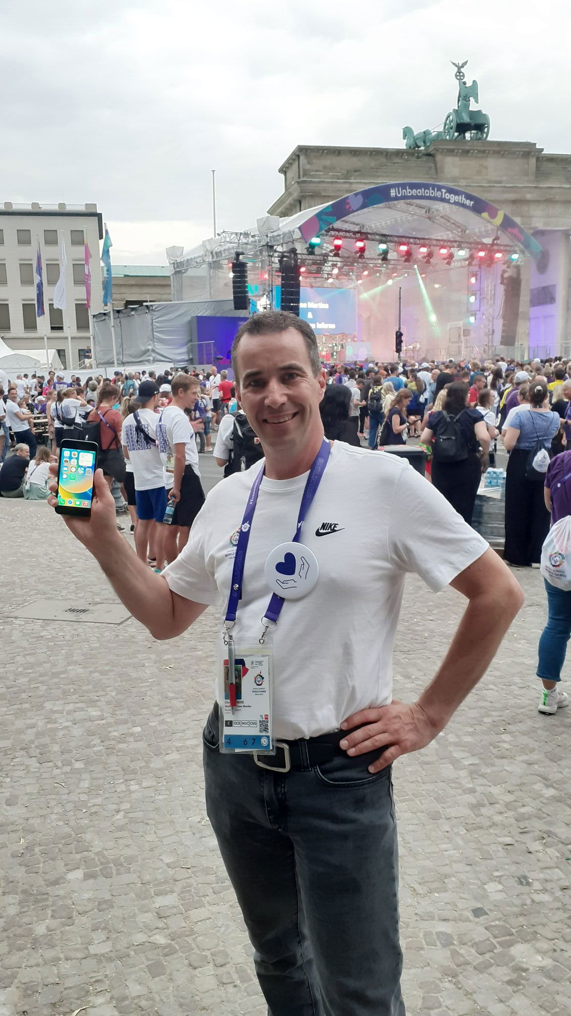 Christian Bode ist pädagogischer Mitarbeiter der Evangelischen Erwachsenenbildung Osnabrück und war bis Sonntag als EKD-Seelsorger bei den Special Olympics in Berlin dabei. Gemeinsam mit seiner katholischen Kollegin Lisa Keilmann arbeitete er zusammen in einem multiprofessionellen „Fürsorge / Wellbeing-Team“ mit Psychologen und Sozialarbeitern und bot etwa ein Sorgentelefon an. Das war neu für die gesamte Special Olympics-Bewegung.