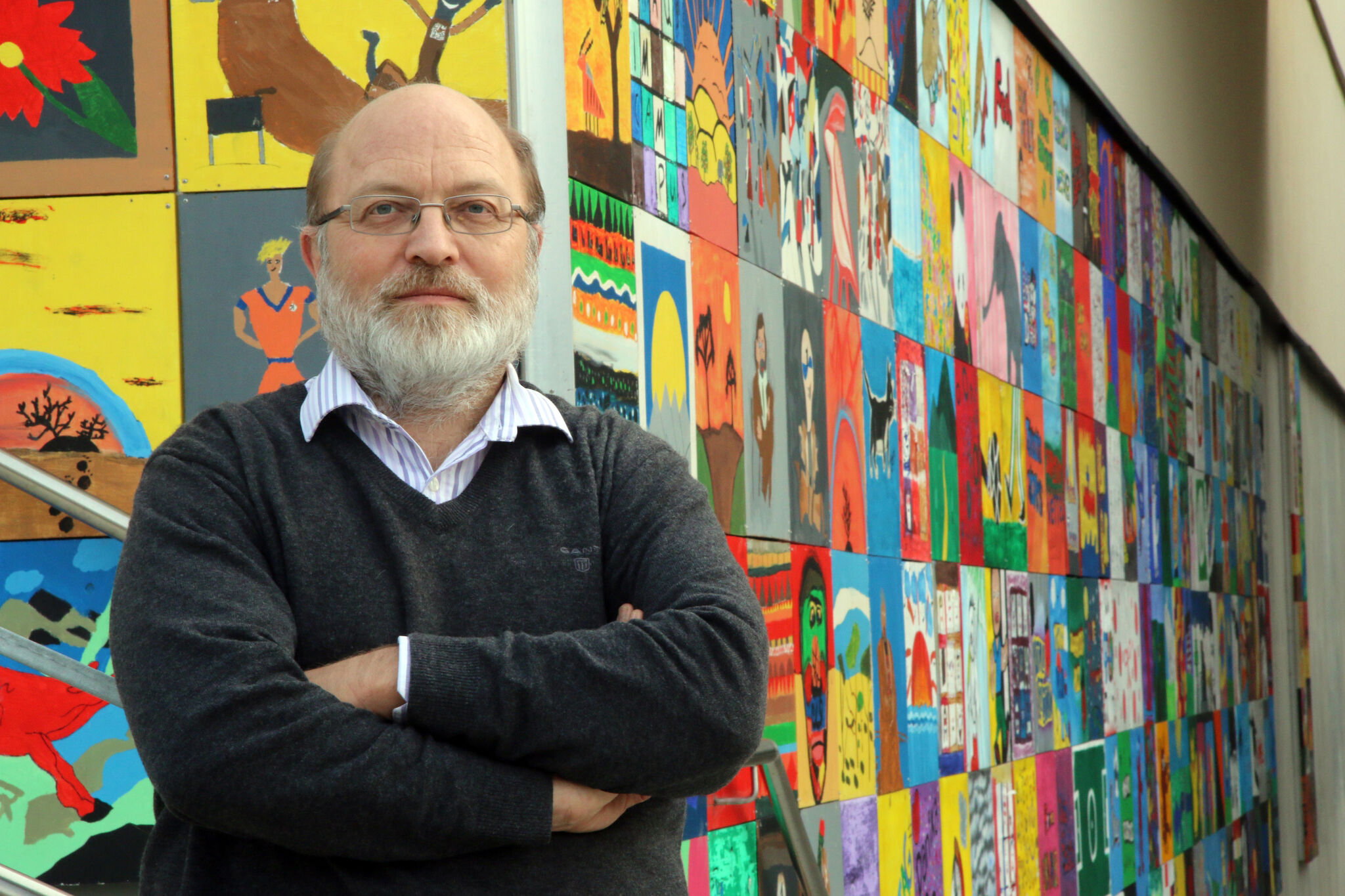Der Friedensarbeiter Hagen Berndt vor einem Graffiti. Weltweit ist er in Krisenherden in