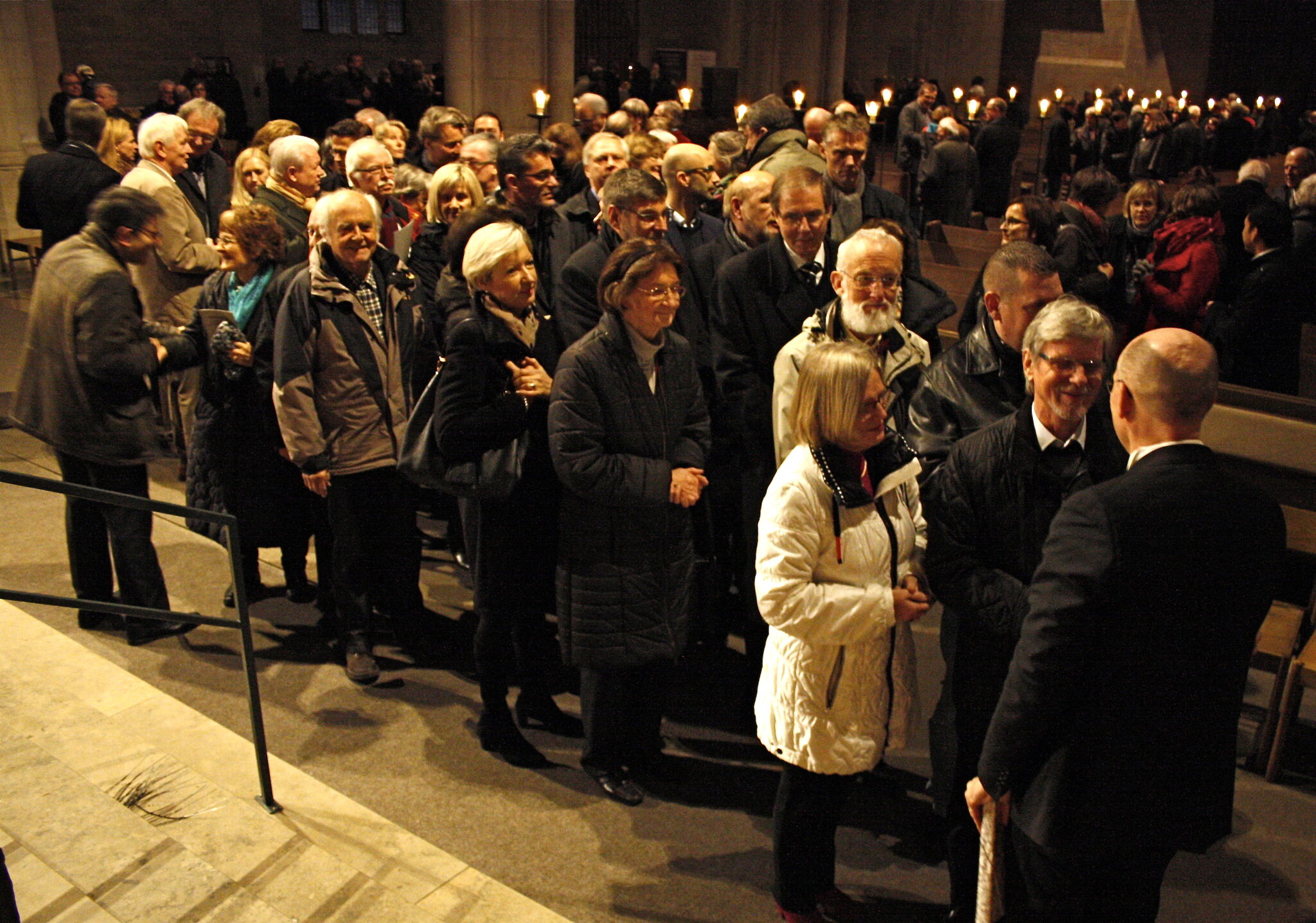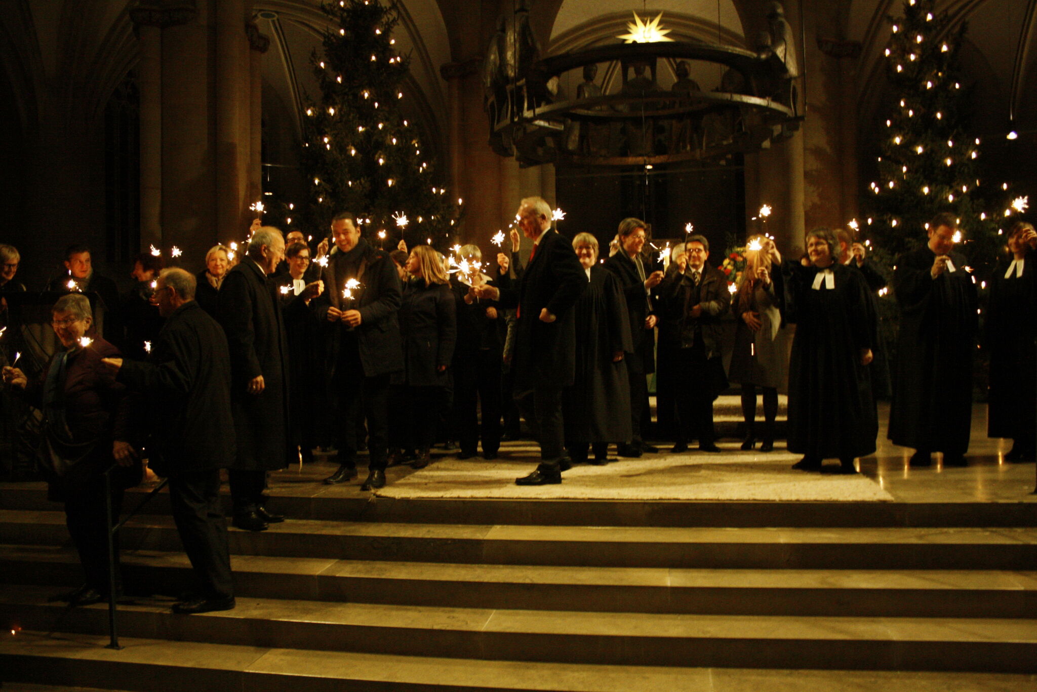 Mit einem Wunderkerzen-Flashmob dankten Geistliche, Ehrenamtliche und Freunde Aßmann für sein elfjähriges Wirken in Hildesheim. Bild: Ralf Neite