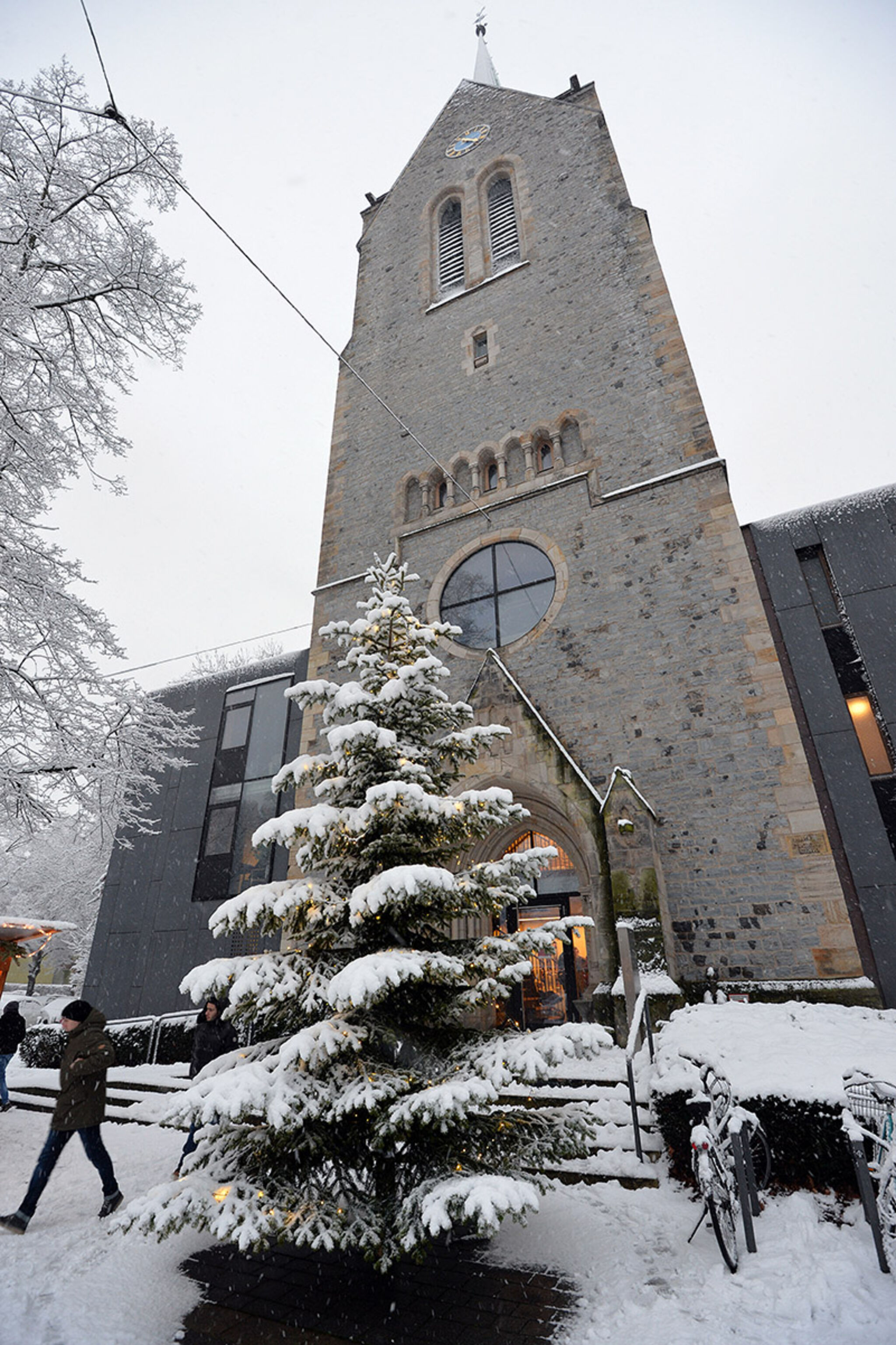 Kirche in Hannover eingehüllt in die Winterlandschaft. Bild: epd-Bild
