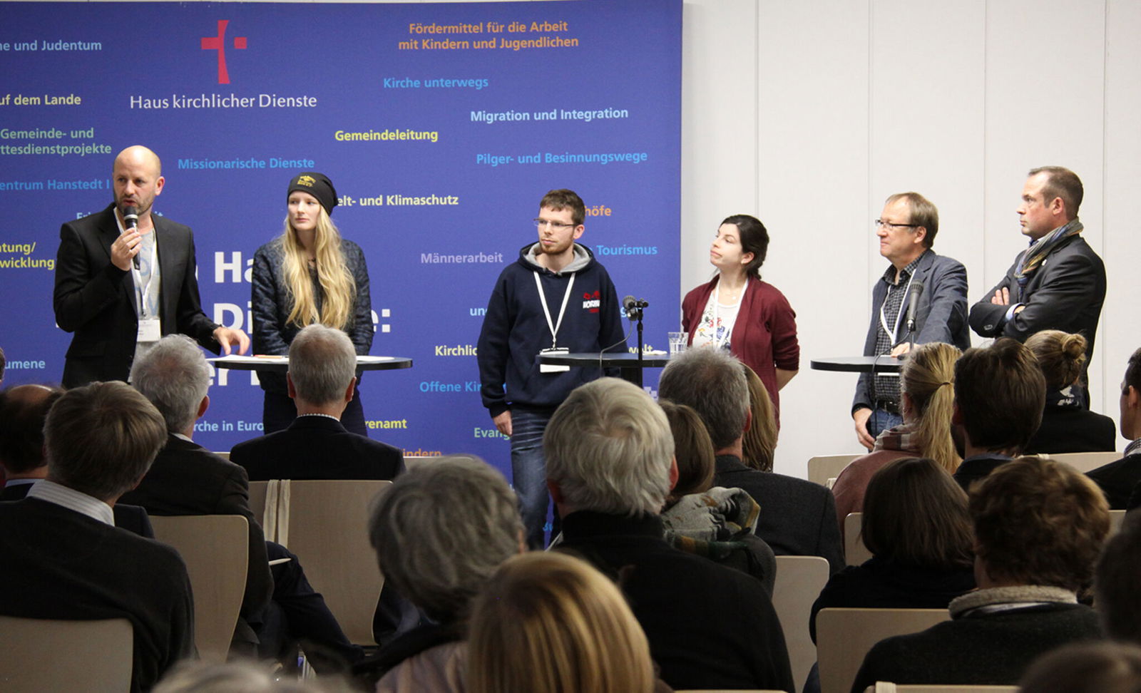 Zum Abschluss kamen die Gäste, „die ihre Kirche lieben, aber kritisch hinterfragen“, zu einer Podiumsdiskussion zusammen. Die Moderation übernahm Pastor Mathis Burfien, im Landeskirchenamt der Evangelisch-lutherischen Landeskirche Hannovers verantwortlich für die Förderung und Gewinnung des theologischen Nachwuchses.