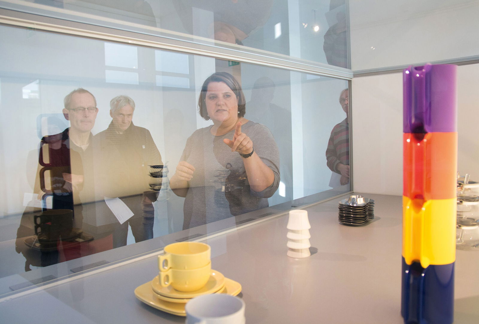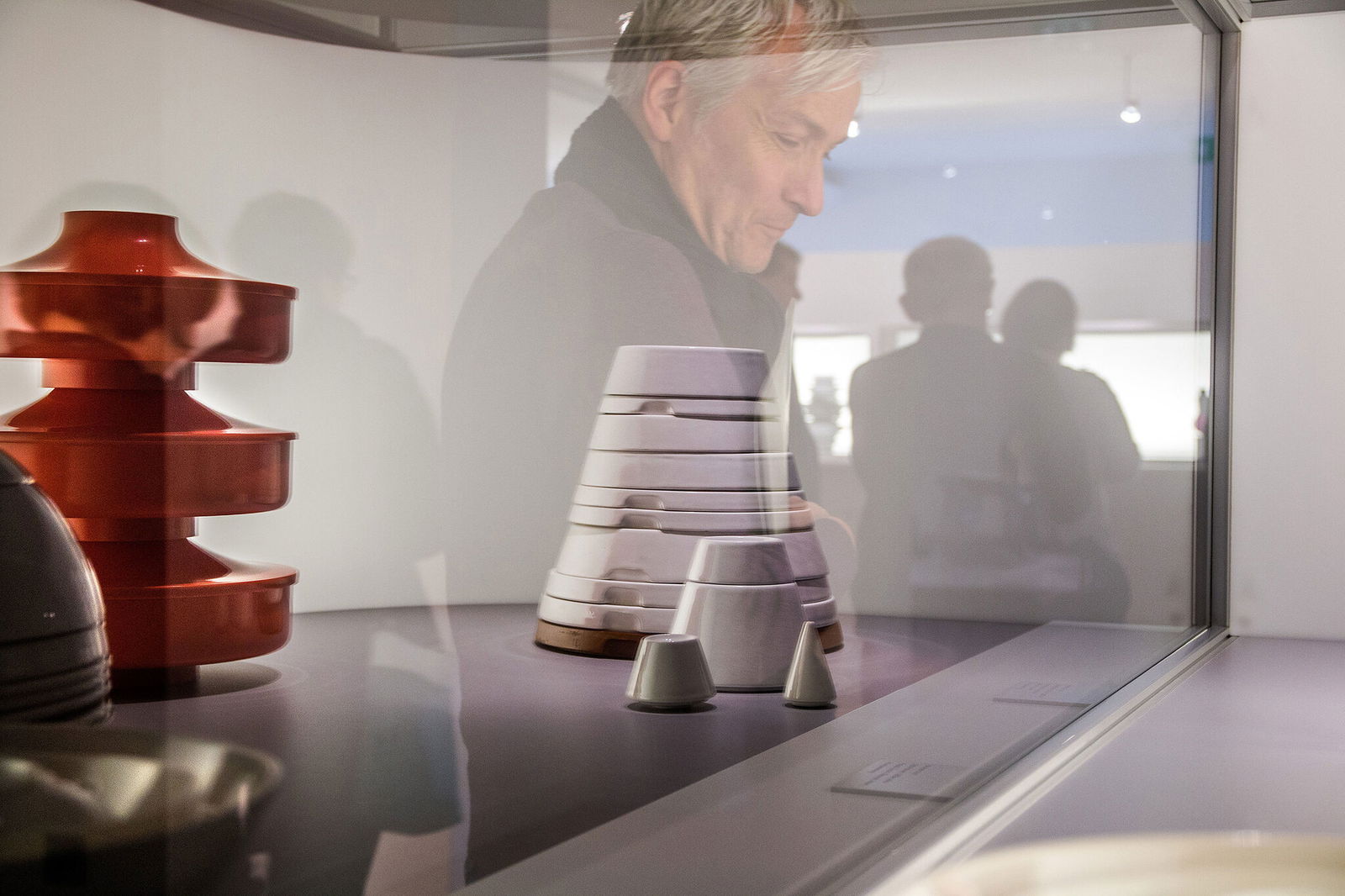 Die Ausstellung veranschaulicht in Vitrinen und auf Podesten aber auch, was wir täglich wohl mehr oder weniger unbewusst stapeln: Vorratsbehälter in der Küche, Ablagekörbe im Büro, Getränkekisten im Vorratsraum, Geschirr beim Campen, Bauklötze im Kinderzimmer.