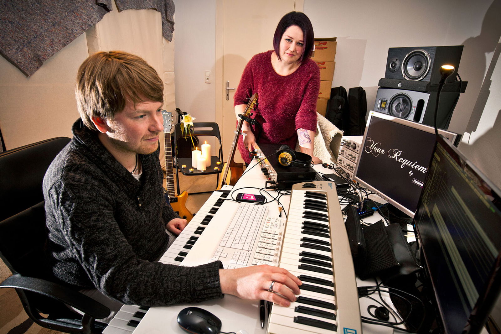 Wer seiner eigenen Beerdigung eine besondere Note verleihen oder seinen Angehörigen ein außergewöhnliches Erinnerungsstück hinterlassen möchte, kann den 30-Jährigen beauftragen, in seinem Tonstudio in Buxtehude ein Abschiedslied zu arrangieren. In der Literatur gebe es geschriebene Biografien, sagt Paprotny: "Ich erzähle Lebensgeschichten musikalisch." Zusammen mit seiner Frau hat er 2015 das Start-up "Your Requiem" gegründet.