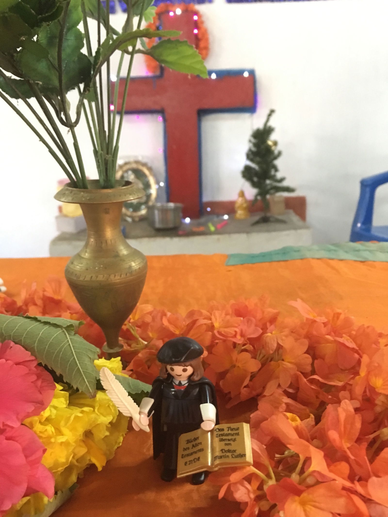 Wie "lutherisch" sich die kleine Gemeinde in Chigarumamidi zukünftig verstehen wird, bleibt abzuwarten. "Christlich" ist in Indien bereits Profil genug. Aber dies ist gewiss: Den Altar der kleinen Dorfgemeinde schmückt jetzt Luthers Playmo-Double.