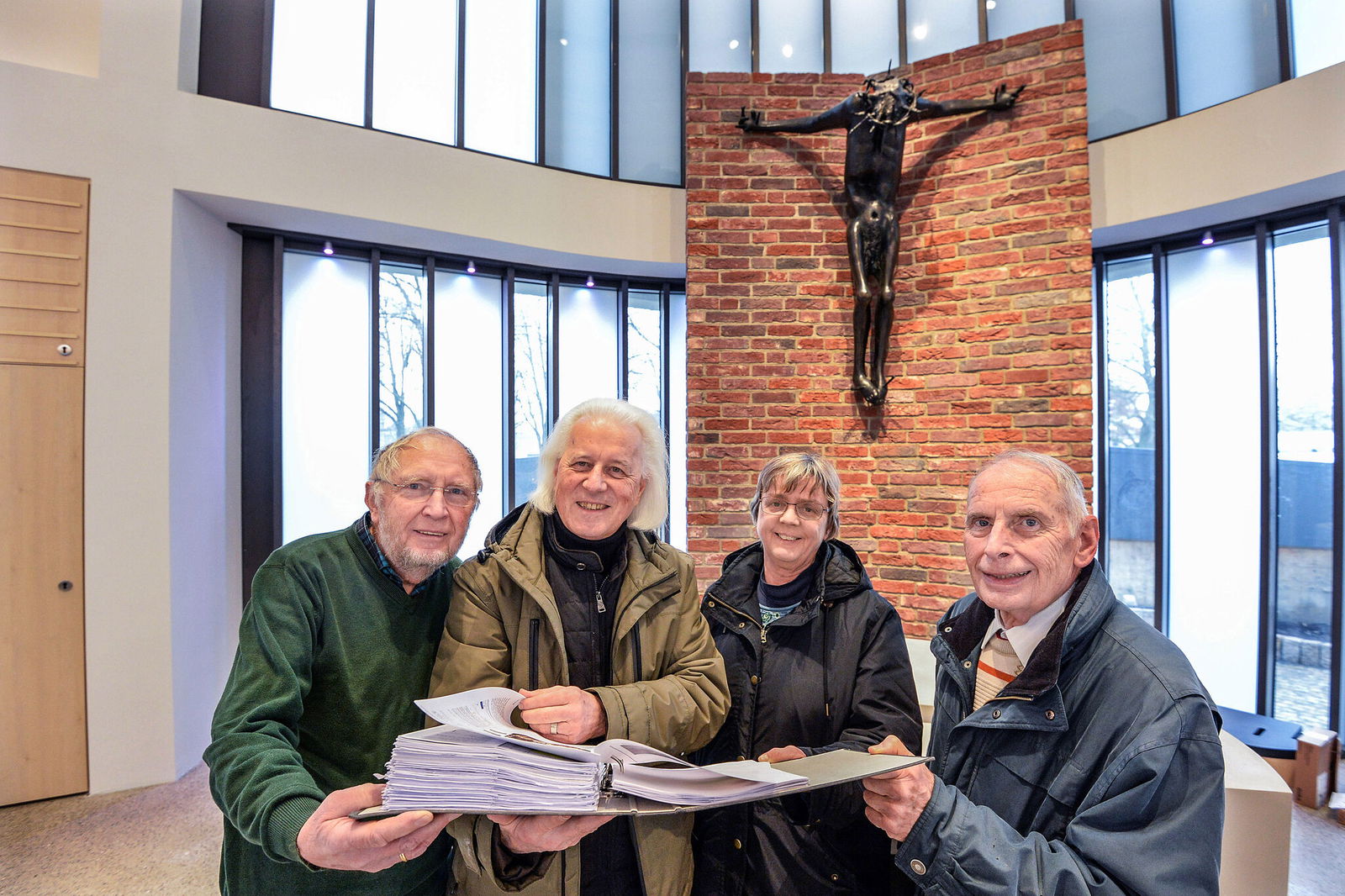 Die Christusfigur hängt heute wieder fast wie früher an einer roten Backsteinwand im Altarraum und bildet den optischen Mittelpunkt des hohen und hellen Neubaus, der ansonsten ganz in Weiß gehalten ist. Für Muckelberg ist die Figur ein Sinnbild: "Dass er wieder hier ist, ist für uns wie eine Auferstehung."