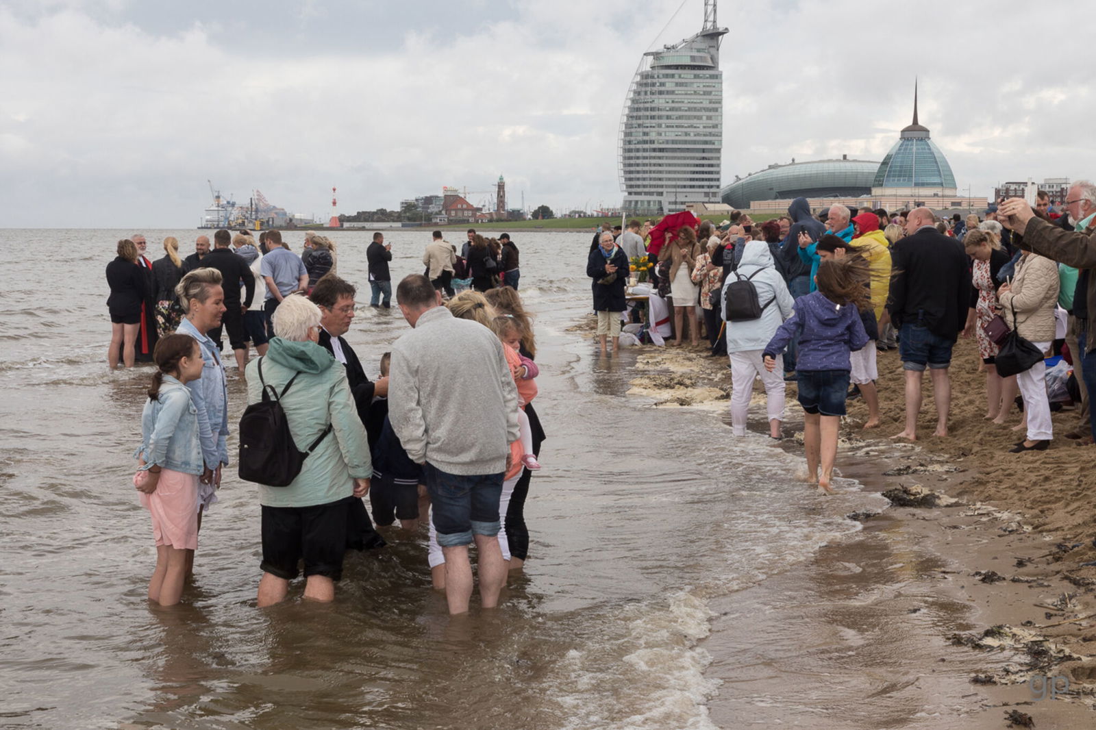 Wer kann schon von sich sagen, dass er in einem Fluss getauft wurde? Nicht jeder kann das von sich sagen, aber seit dem 20. August 2017 doch einige Menschen mehr: An diesem Sonntag fand im Bremerhavener Weserstrandbad das vierte Tauffest in der Bremerhavener Tradition statt, und noch nie gab es in der hannoverschen Landeskirche ein Tauffest mit einer so hohen Zahl an Täuflingen - insgesamt 128 Menschen im Alter von 0 bis 44 Jahren ließen sich taufen. Die meisten von ihnen wohnen in Bremerhaven, aber auch aus Geestland und Schiffdorf und sogar aus weiter entfernten Städten wie Hannover und Köln sind einige Tauffamilien angereist. Die Atmosphäre, der Fluss, der Strand, das ist das Besondere beim Wesertauffest – das haben viele Familien bei den Taufgesprächen gesagt. Und dass die Taufe unter freiem Himmel ganz besonders eindrücklich wird und das Tauffest ein Event ist, das man unbedingt miterleben muss, darin scheinen alle Tauffamilien sich einig zu sein.