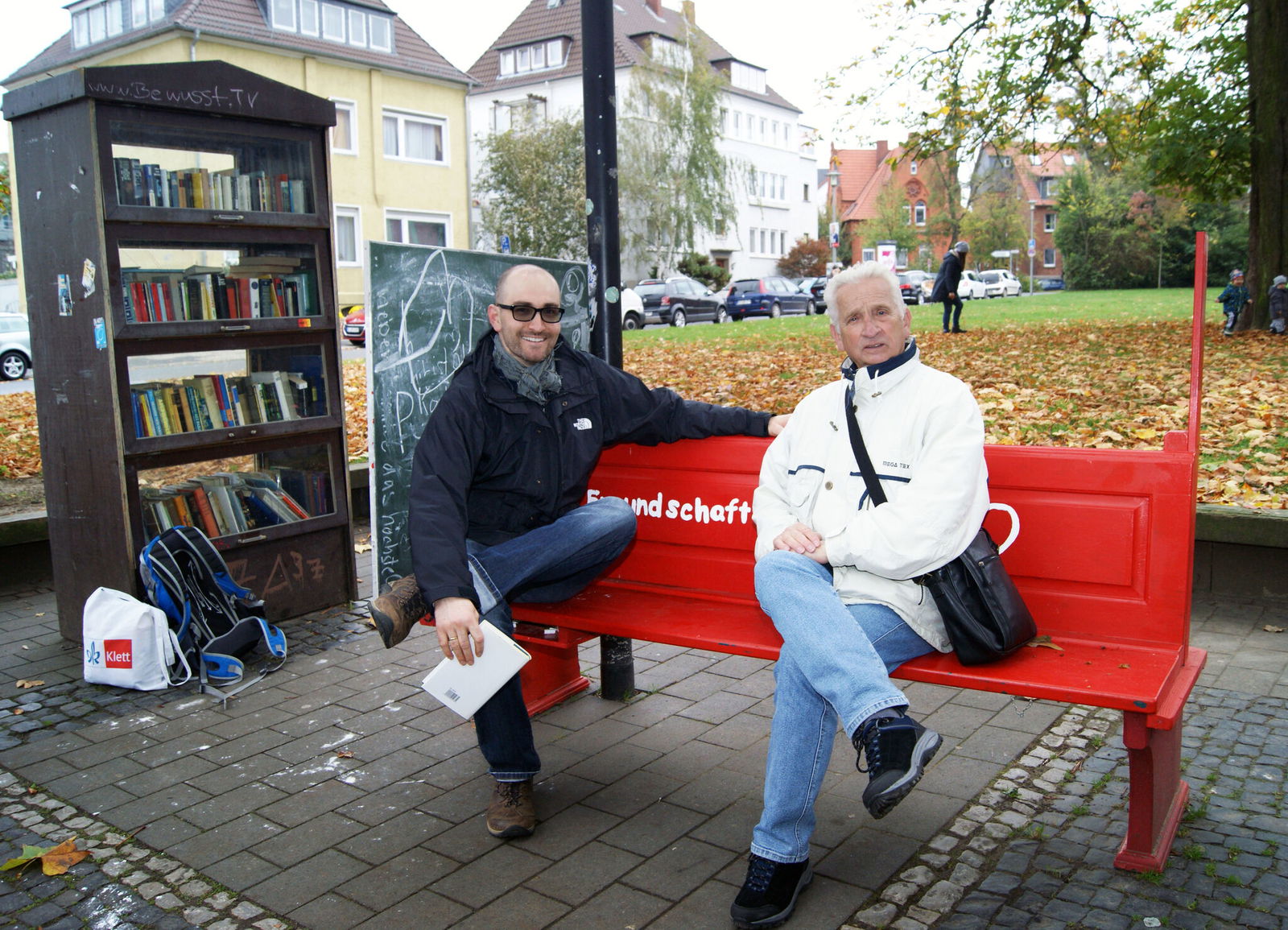 Plötzlich sind sie da, farbenfrohe Bänke mit dem Charme des Selbstgemachten, einzigartig und überraschend, verteilt an unterschiedlichen Plätzen in der Stadt: Da grinsen Kichergesichter von der „Gute-Laune-Bank“ in Richtung Hohnsensee, während die „Himmelsbank“ daran erinnert, dass Blau doch die schönste Himmelsfarbe ist. In der Kesslerstraße reiht sich eine lilafarbene Bank mit Druckmuster ein in die Nachbarschaft der dezenteren Modelle, die viele Anwohner hier vor ihren Häusern aufgestellt haben. Die mit Sternen dekorierte Bank in der Fußgängerzone bietet sogar einen Getränkehalter für eine etwas ausgedehntere Pause. Und am Theater finden Bank-Besetzer gleich nebenan im Bücherschrank auch Lesestoff.