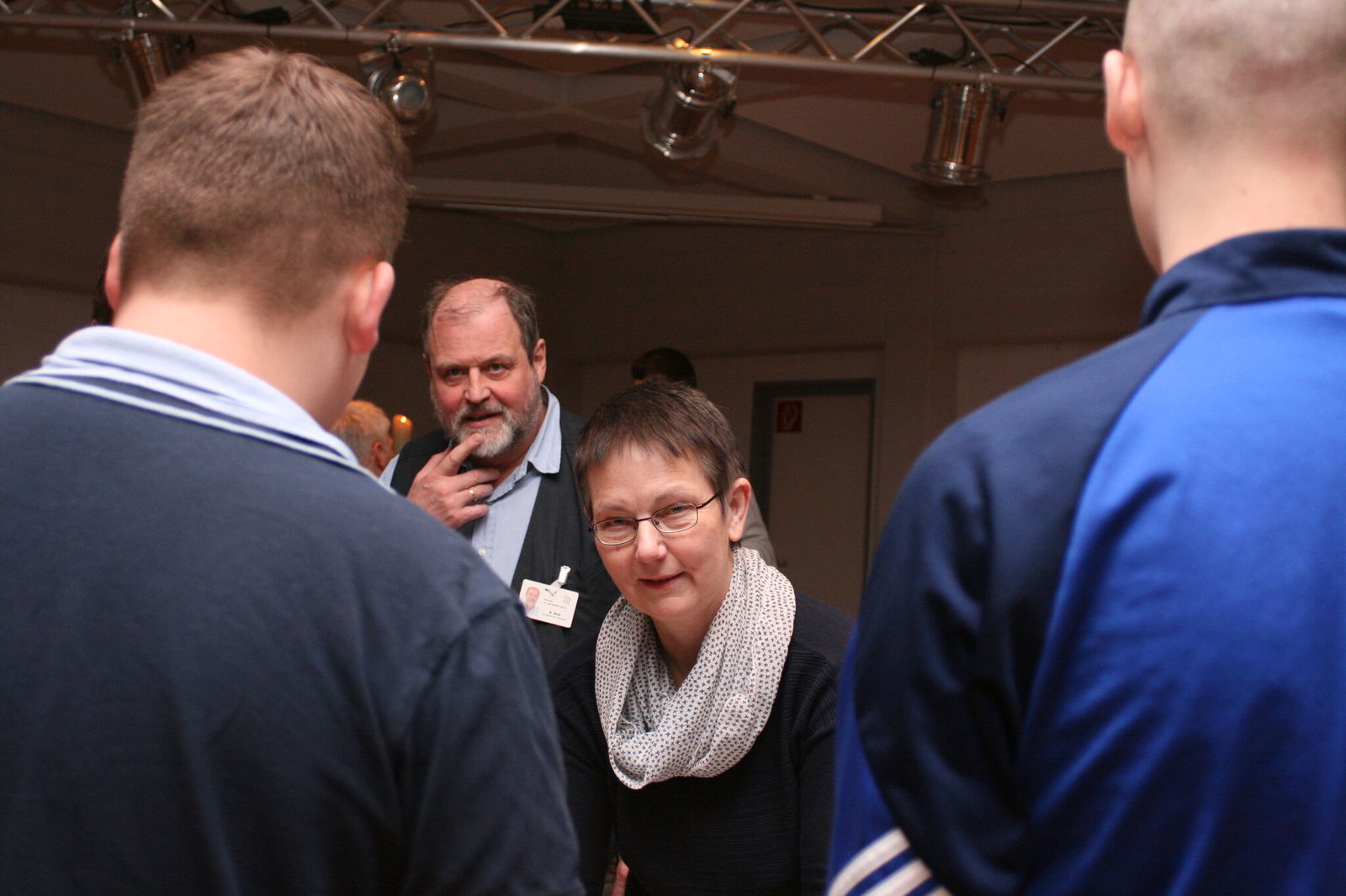 Fünf jugendliche Häftlinge verteilen im Andachtsraum Kaffee und Kuchen an die Gäste und sitzen schließlich im Stuhlkreis zwischen ihnen. Die meisten der ehrenamtlichen Vorstandskandidaten kommen wie Bestatter Thomas Rust direkt von der Arbeit in die Haftanstalt. Er trägt noch seinen schwarzen Anzug. Schnell ist er mit den jungen Häftlingen in einem intensiven Austausch über Tod und Sterben. Der 22-jährige David, der vor drei Jahren wegen einer Schlägerei mit gefährlicher Körperverletzung verurteilt wurde, hat unter anderem mal in einem Pflegeheim gearbeitet. Er erinnert sich daran, wie schwierig der Umgang mit dem Thema ist. "Man muss dabei auch immer ein Stück die Distanz wahren", sind sich David und der Bestatter einig.