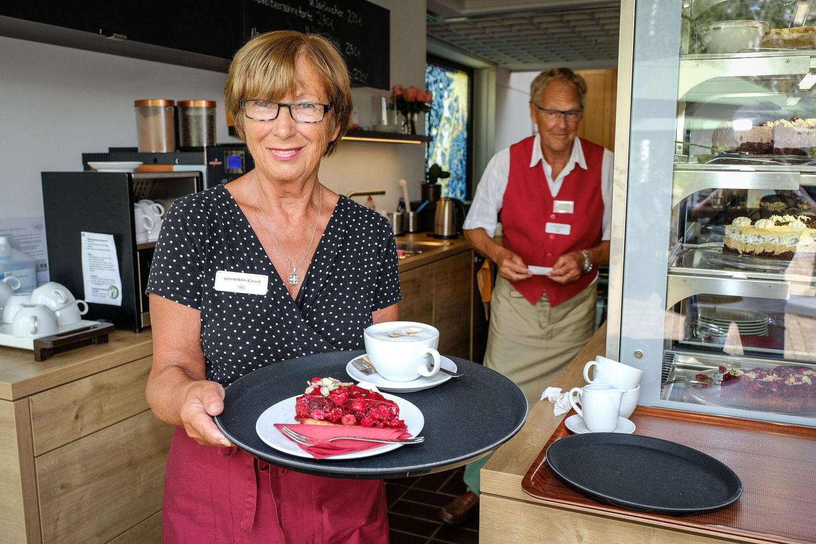 Drei Ehrenamtliche teilen sich an jedem Tag die Arbeit im Service. "So hat auch immer jemand Zeit, sich mal dazuzusetzen, wenn ein Gast alleine her kommt", erklärt Sandra Heiting. Im Café Luca bleibe deshalb niemand einsam. Und oft könnten die Gäste in dem Café auch Pastorin Riedel oder sie selbst antreffen und mit ihnen über ihre Sorgen sprechen. Sogar Trauergespräche fanden im Café schon statt.