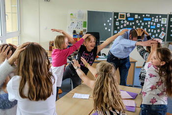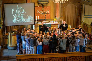 Nach 50 Minuten intensiven Rätselratens sind auch der Landesbischof und seine jungen Mitspieler a...