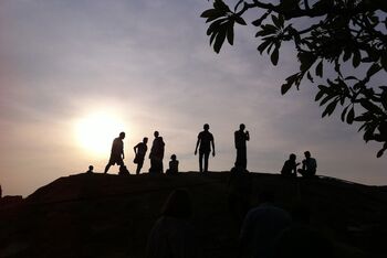 Mitten in der Menschenmenge: er sieht die anderen um sich herum, sie reden, sie rufen, sie streit...