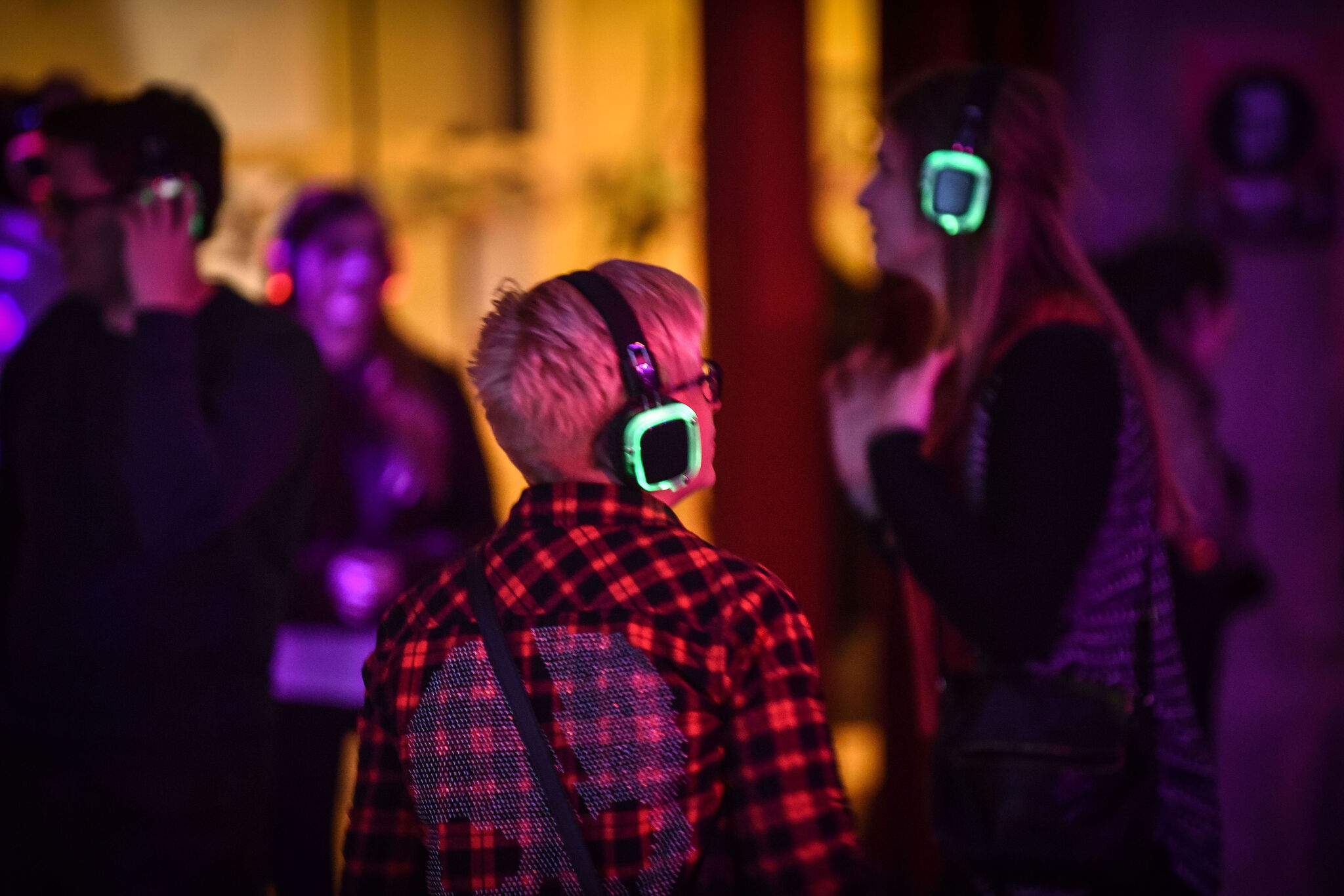 Ich habe das vor Jahren mal in einem Film gesehen und das hat mir gefallen. Der Gedanke der „Silent Partys“ ist, dass man sich mit anderen auch unterhalten kann. Wir hatten bislang zwei Partys – und die Idee kommt super gut an, zuletzt waren rund 300 Leute da.