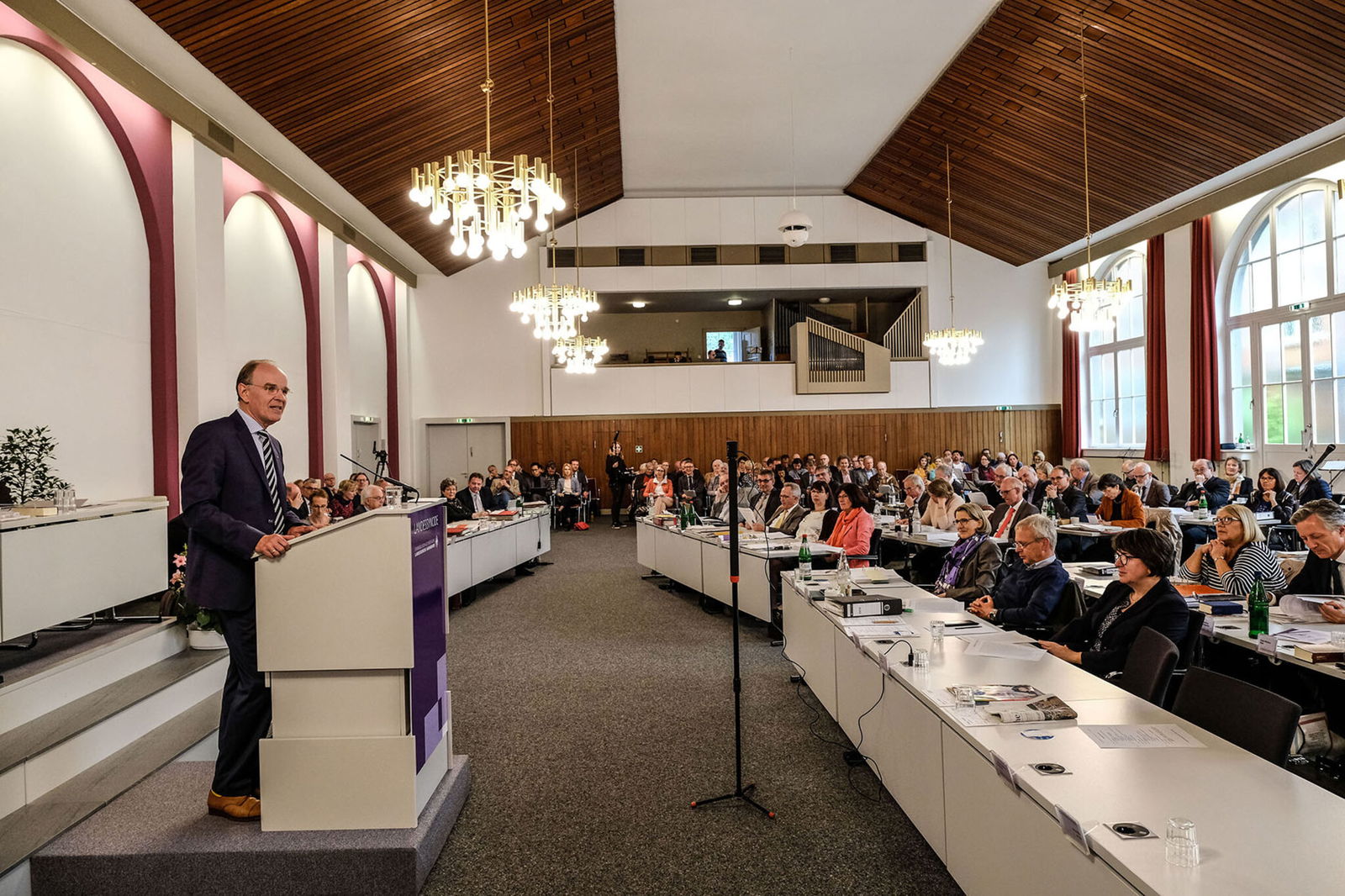 Im Blick auf sinkende Mitgliederzahlen in den Kirchen forderte der Landesbischof die evangelische Kirche auf, selbstkritisch ihre Traditionen zu reflektieren, ohne zugleich jedem Trend zu folgen. "Das braucht Wagnis und Risikomut", sagte er. Noch bestünden Chancen, Innovationen auch zu finanzieren. "Wenn wir jetzt nicht handeln, werden wir in Zukunft handlungsunfähig sein." Überschüsse sollten deshalb nicht nach dem Gieskannenprinzip verteilt werden, sondern gezielt missionarische Initiativen und Ausrichtungen von Gemeinden fördern.