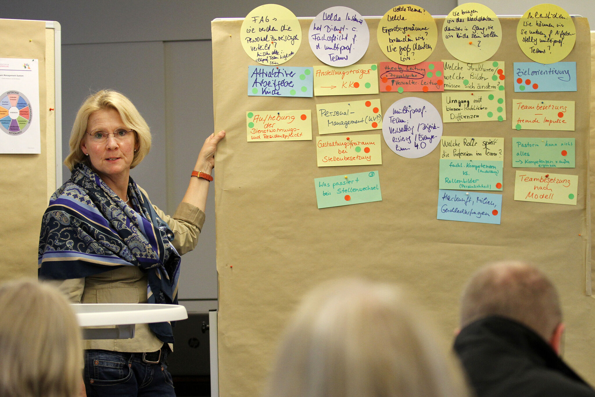 Erfahrungen aus dem Dorfpfarramt spielen hier eine prägende Rolle, wie in der Arbeitsgruppe „Sozialraum“ deutlich wurde. Die Kerngemeinde wird älter und kleiner, der Traditionsabbruch nimmt zu: „Zu viel zu arbeiten und trotzdem wirkungslos zu sein – das ist es doch, was einen fertigmacht“, sagte Dr. Adelheid Ruck-Schröder, Studiendirektorin des Predigerseminars Loccum. Und eine Gemeindepastorin wünschte sich mehr Gelassenheit im Umgang mit Fragen von Konfirmandeneltern: Warum denn der Konfirmationsspruch unbedingt in der Bibel stehen müsse?
