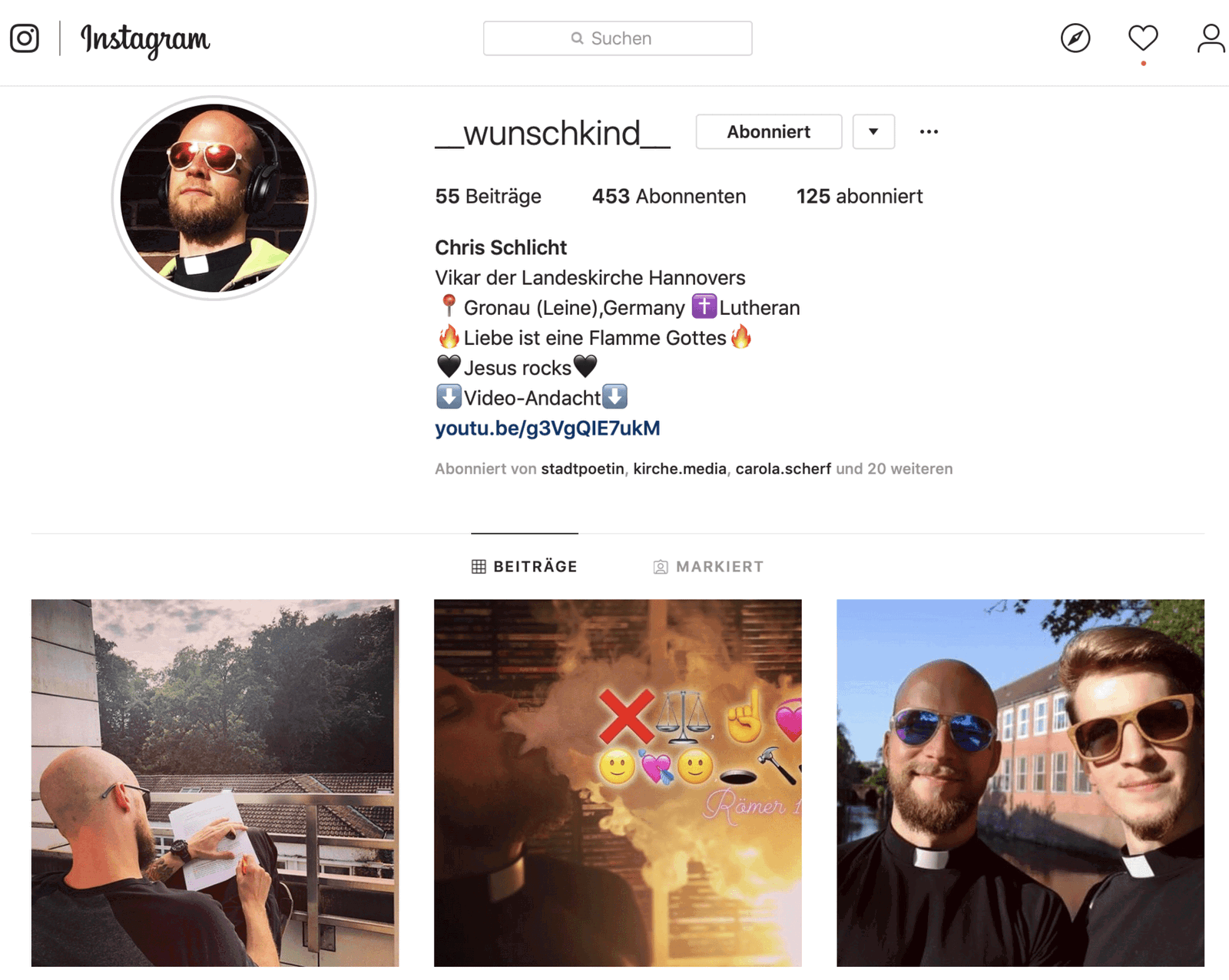 Für den 30-jährigen Christopher Schlicht sind der Rechtsradikalismus und das Zusammenleben mit Flüchtlingen die zentralen gesellschaftspolitischen Themen auf dem Kirchentag. Auch der Umgang mit „Fake News“, „gefälschten Informationen“ treibt ihn um. Schlicht ist Vikar in Gronau an der Leine, er bloggt für die Landeskirche Hannovers vom Kirchentag. Doch nicht nur auf Instagram wird man ihn unter „Wunschkind“ oder „Chris Schlicht“ antreffen. Der Vikar will sich auf eine Spurensuche begeben. „Ich suche nach neuen Gottesdienstformaten, die ich später mit meiner Gemeinde feiern kann. Ich verstehe mich als Sammler“, sagt er. Ihm selbst seien Gottesdienste lange Zeit fremd gewesen. „Erst in einem Rockgottesdienst habe ich verstanden, worum es in einem traditionellen Gottesdienst geht“, sagt er.