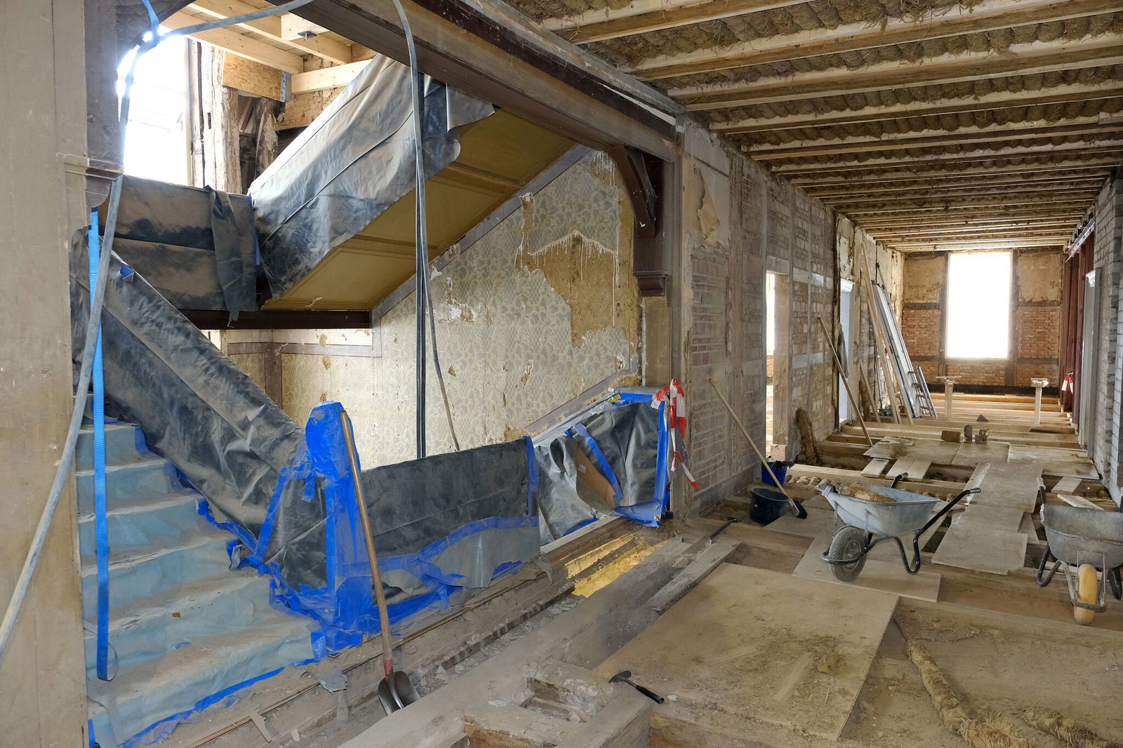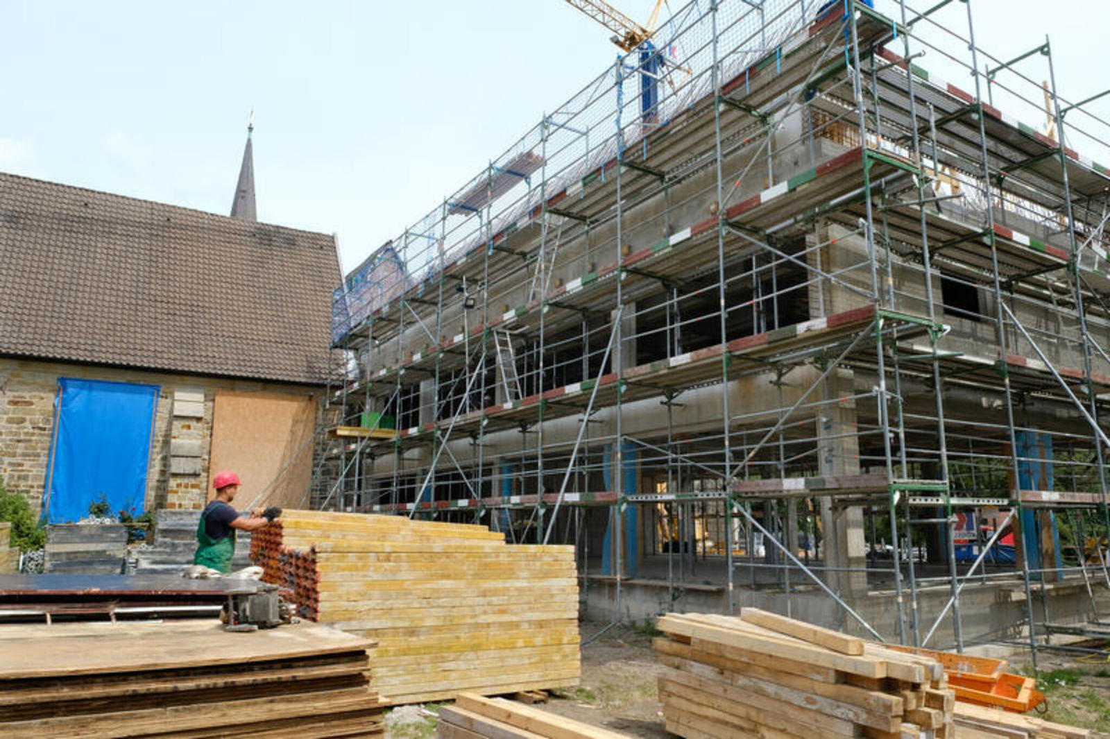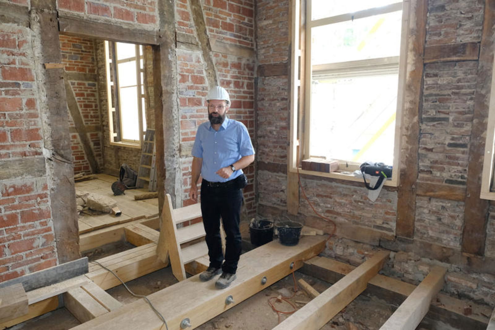 "Die Schäden an der Bausubstanz sind wesentlich gravierender, als wir zuvor angekommen haben", erläutert der landeskirchliche Baudirektor Werner Lemke. Sein Kollege Oliver Wolf steigt über eine Treppe in den ersten Stock und deutet auf ein frisch eingesetztes Gebälk: "Die alten Balken waren so vergammelt, dass sie nicht mehr getragen haben. Sie mussten alle ausgetauscht werden."