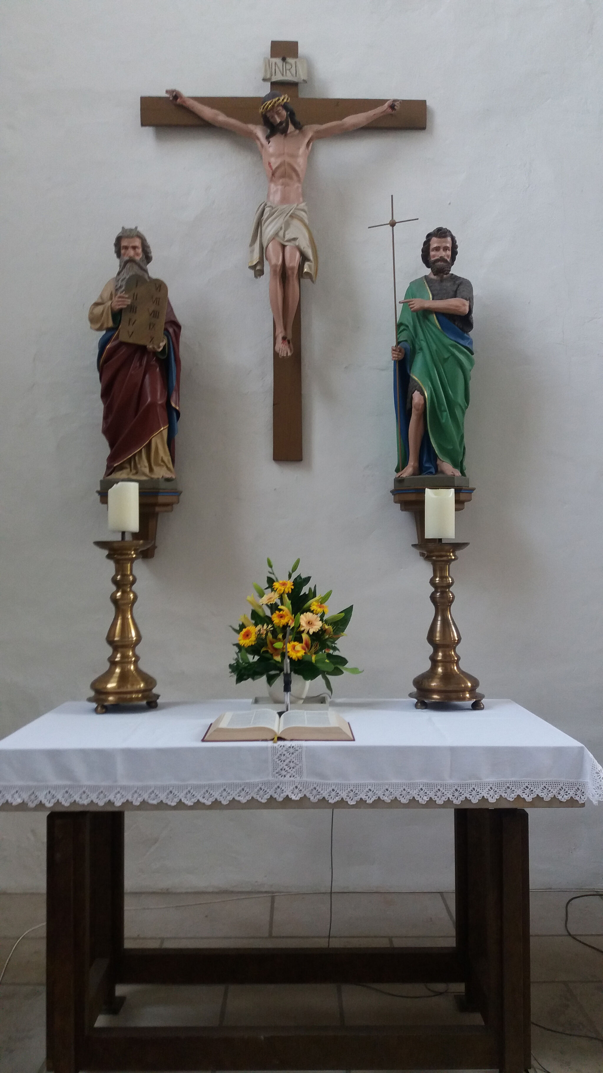 Im nordöstlichen Seitenschiff befinden sich an der Wand Elemente des ehemaligen neugotischen Hochaltars, geschaffen von dem in Osnabrück geborenen Bildhauer August von Kreling. Ein Kruzifix wird umrahmt links von der Gestalt Moses mit den Gesetzestafeln und rechts von Johannes dem Täufer.